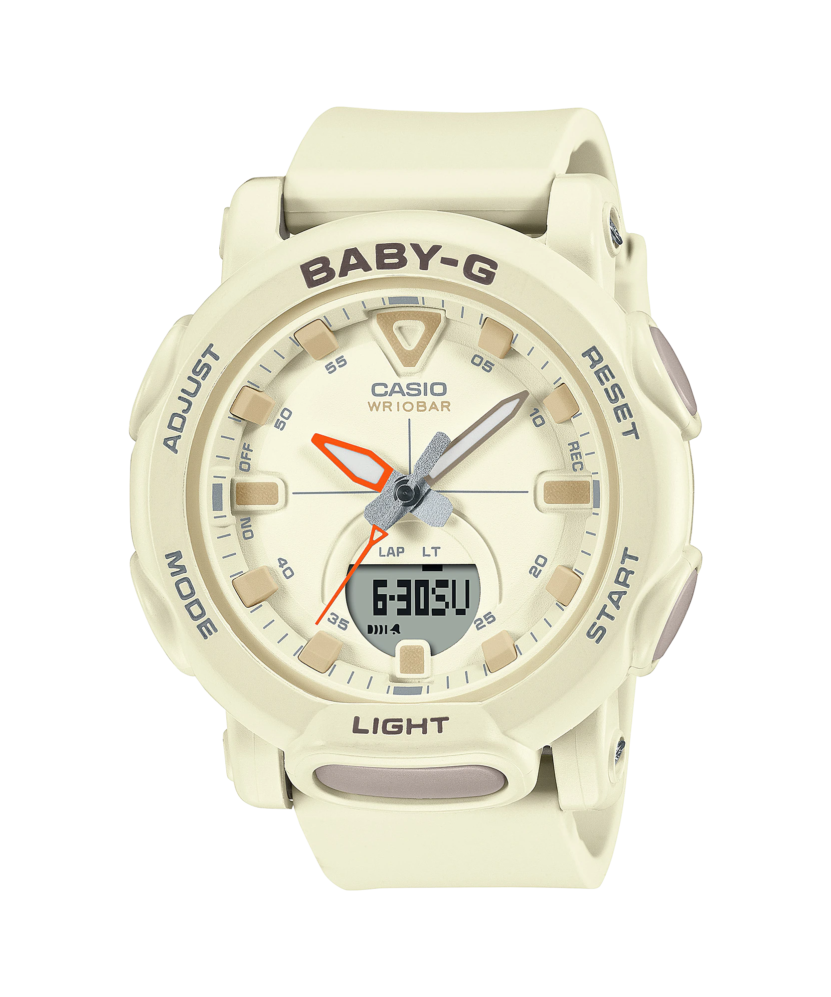 Thỏa sức ngao du ngoài trời với mẫu đồng hồ BGA-310 sành điệu và mạnh mẽ. Chiếc đồng hồ màu hồng san hô là sự chọn tuyệt vời phù hợp với phong cách thời trang ngoài trời ngày nay. Mặt đồng hồ tròn và rộng kết hợp dây đeo lớn và vạch chỉ giờ nổi làm tôn lên vẻ ngoài nghịch ngợm và giúp bạn dễ đọc. Dây đeo màu sáng giúp hiển thị giờ rõ ràng ngay cả trong bóng tối để bạn xem nhanh hơn. Chiếc đồng hồ có phần vấu nối dây đeo vừa vặn phù hợp với mọi chuyển động. Chiếc đồng hồ này còn cung cấp nhiều chức năng thực tiễn như cấu trúc chống va đập và khả năng chống nước ở độ sâu lên đến 100 mét. Nút bấm phía trước giúp bạn dễ mở đèn LED đôi chiếu sáng mặt đồng hồ và mở màn mình LCD khi đi cắm trại hoặc phiêu lưu. Bạn đang không rảnh tay? Chỉ cần nghiêng cổ tay và bật chức năng phát sáng tự động để xem giờ ngay cả trong bóng tối. Đồng hồ BABY-G giúp bạn luôn có phong cách riêng dù là khi ở nhà giữa đô thị nhộn nhịp hay đang trên đường leo núi, sẵn sàng đối mặt với mọi chuyện xảy ra trong đời sống năng động của mình.