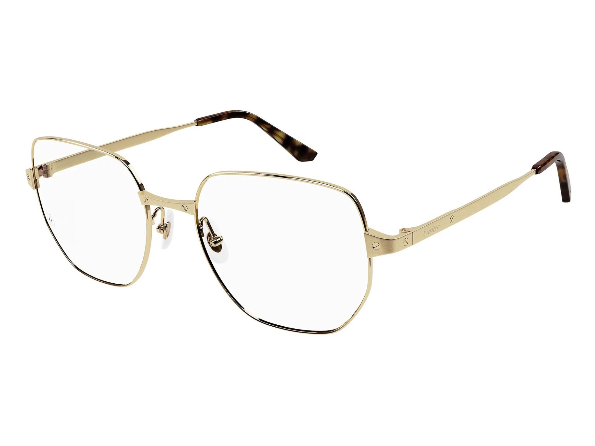 Cartier Core Range optical collection model 0339O 001 featuring smooth and brushed golden finish frame and gold temple.