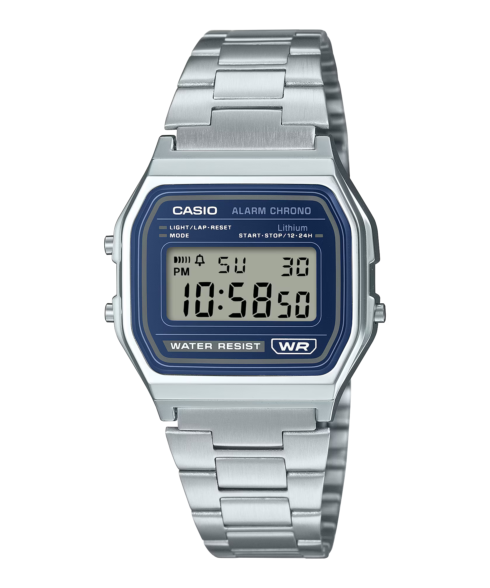 Được yêu thích bởi vẻ ngoài thanh lịch, A158WEA với màn hình kỹ thuật số hiển thị rõ nét giúp bạn dễ dàng kiểm tra giờ, thứ trong tuần và ngày tháng. Chống nước để sử dụng hàng ngày, đồng hồ cũng được trang bị đồng hồ bấm giờ, báo thức, đèn nền và các chức năng tiện dụng khác.