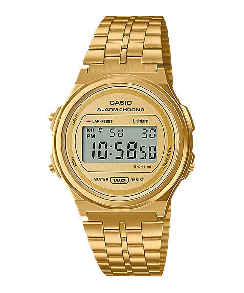 Đồng hồ Casio Nam A171WEG-9A thiết kế mặt tròn cổ điển, kiểu dáng unisex phù hợp cho cả nam và nữ