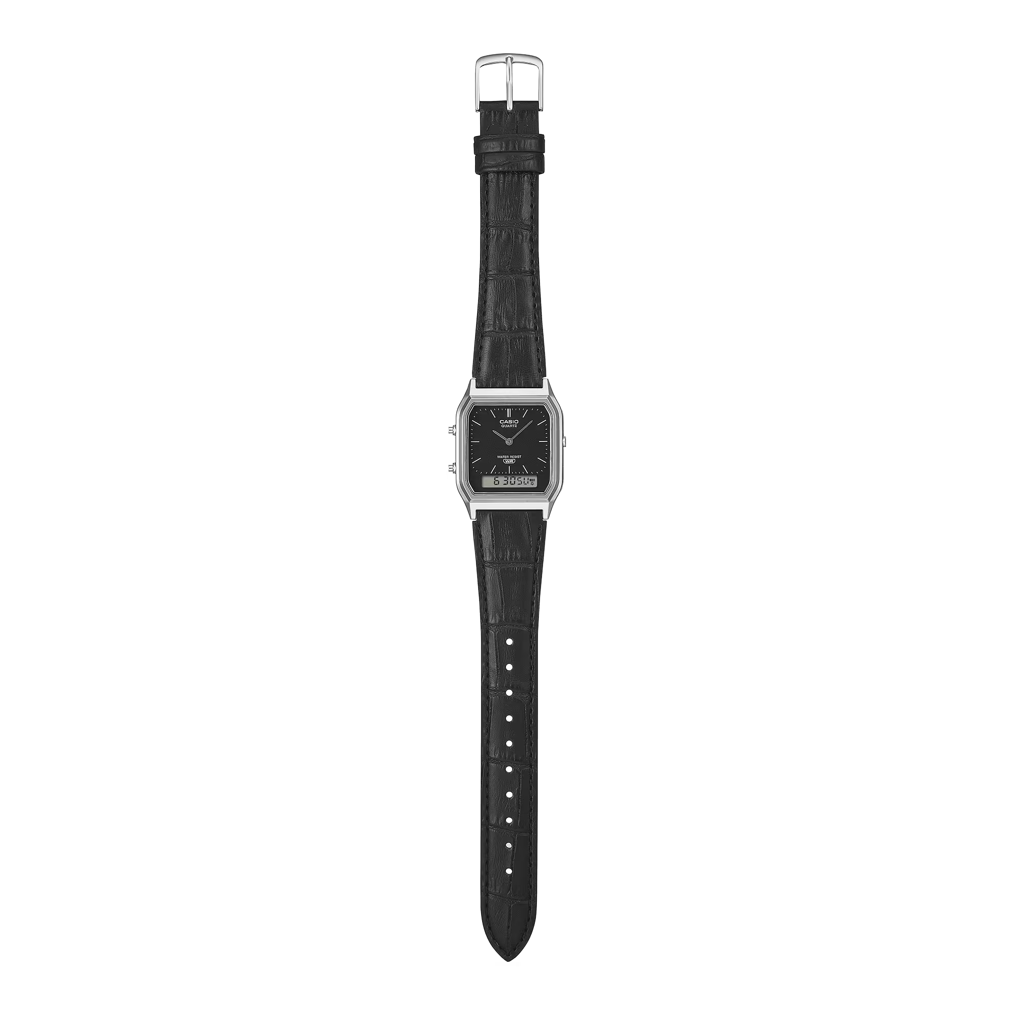 Dựa trên mẫu AQ-230 nổi tiếng, chiếc đồng hồ mang đến vẻ ngoài thanh lịch, tinh tế, cùng tính năng tiện dụng với khả năng chống nước cho nhu cầu sử dụng hàng ngày, đồng hồ bấm giờ, báo thức và nhiều tính năng khác. Thiết kế dập nổi cổ điển của dây đeo mang đến nét chấm phá vượt thời gian.