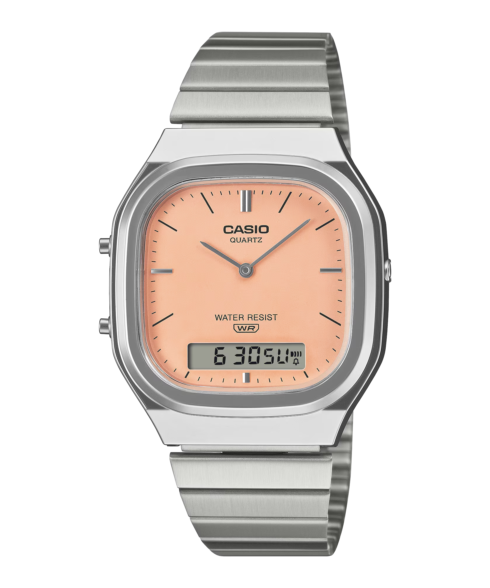 Chiếc đồng hồ kim-số AQ-240 kết hợp màn hình kép với thiết kế retro-hiện đại, mang đến những tông màu ấm áp, nhẹ nhàng và cảm giác thoải mái trên cổ tay.