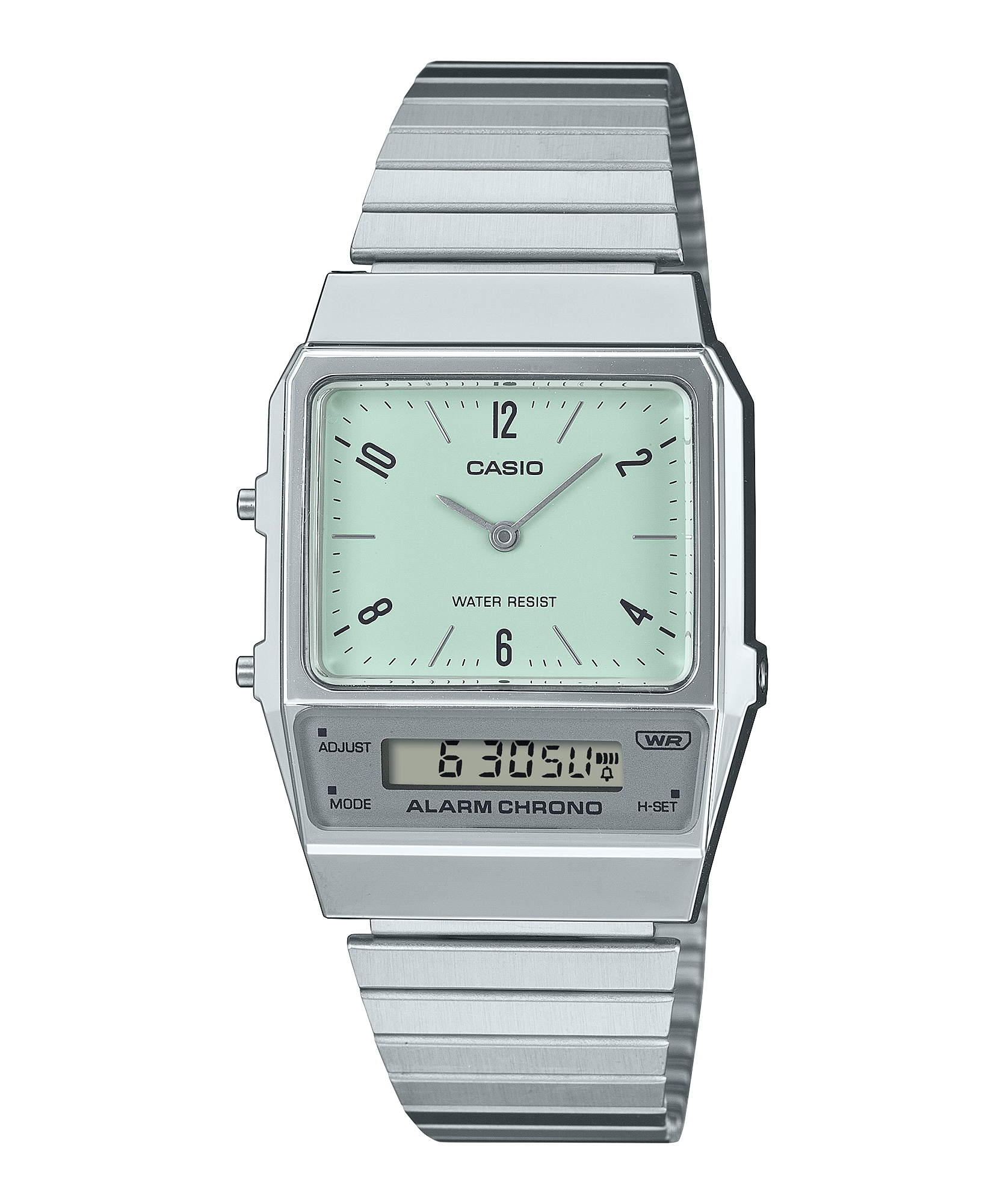 Vạch chỉ giờ dạng số và một chút màu sắc bóng bẩy kết hợp với nhau trong một thiết kế truyền thống nhưng hiện đại. Mặt số và màn hình LCD vừa hiển thị màn hình kim đẹp mắt vừa cho thấy hiệu suất của chiếc đồng hồ số. Vỏ đồng hồ thuôn dài tương phản đẹp mắt với các mắt xích ngang dài và mảnh của dây kim loại, mang đến vẻ ngoài đầy phong cách.