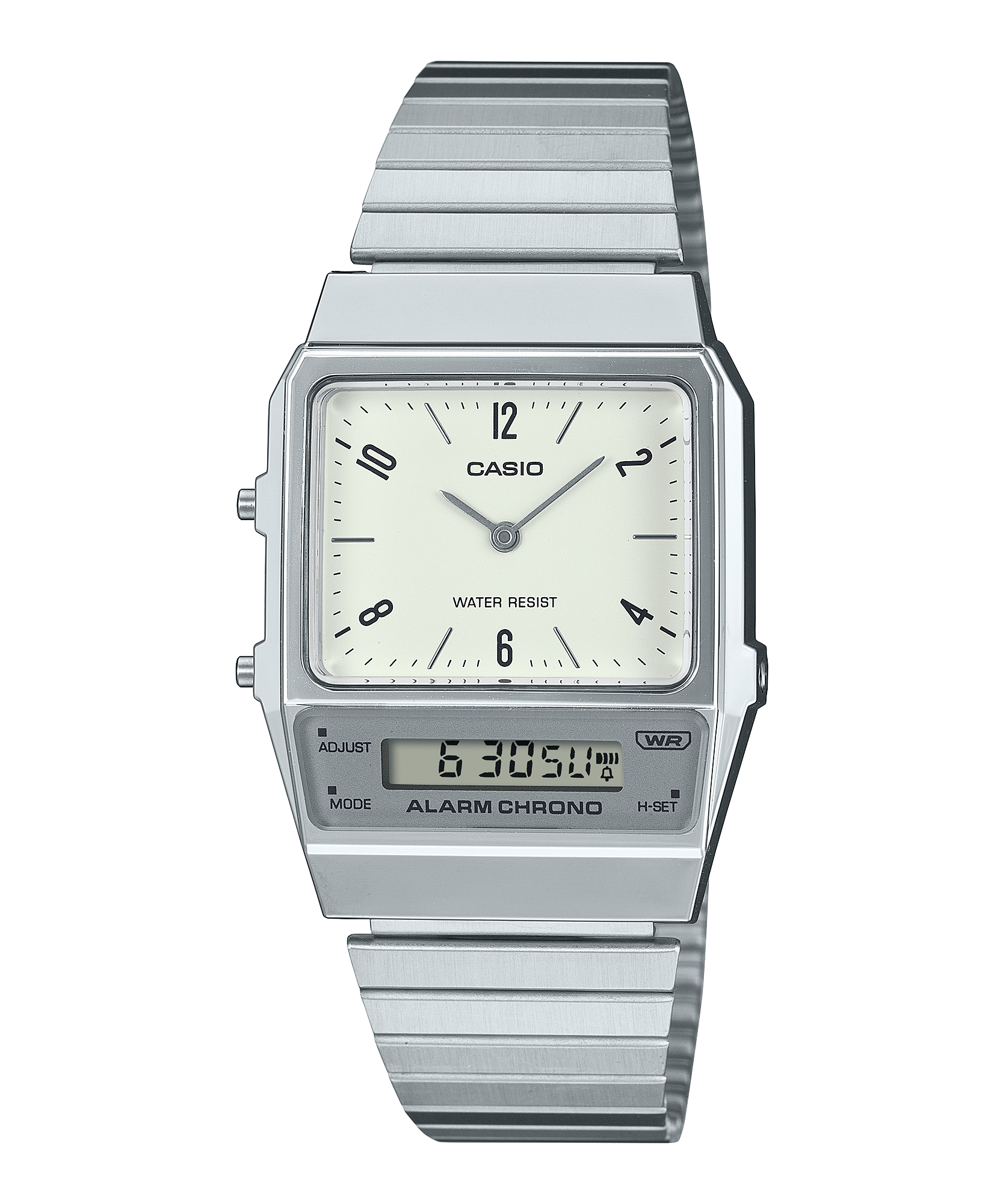 Vạch chỉ giờ dạng số và một chút màu sắc bóng bẩy kết hợp với nhau trong một thiết kế truyền thống nhưng hiện đại. Mặt số và màn hình LCD vừa hiển thị màn hình kim đẹp mắt vừa cho thấy hiệu suất của chiếc đồng hồ số. Vỏ đồng hồ thuôn dài tương phản đẹp mắt với các mắt xích ngang dài và mảnh của dây kim loại, mang đến vẻ ngoài đầy phong cách.