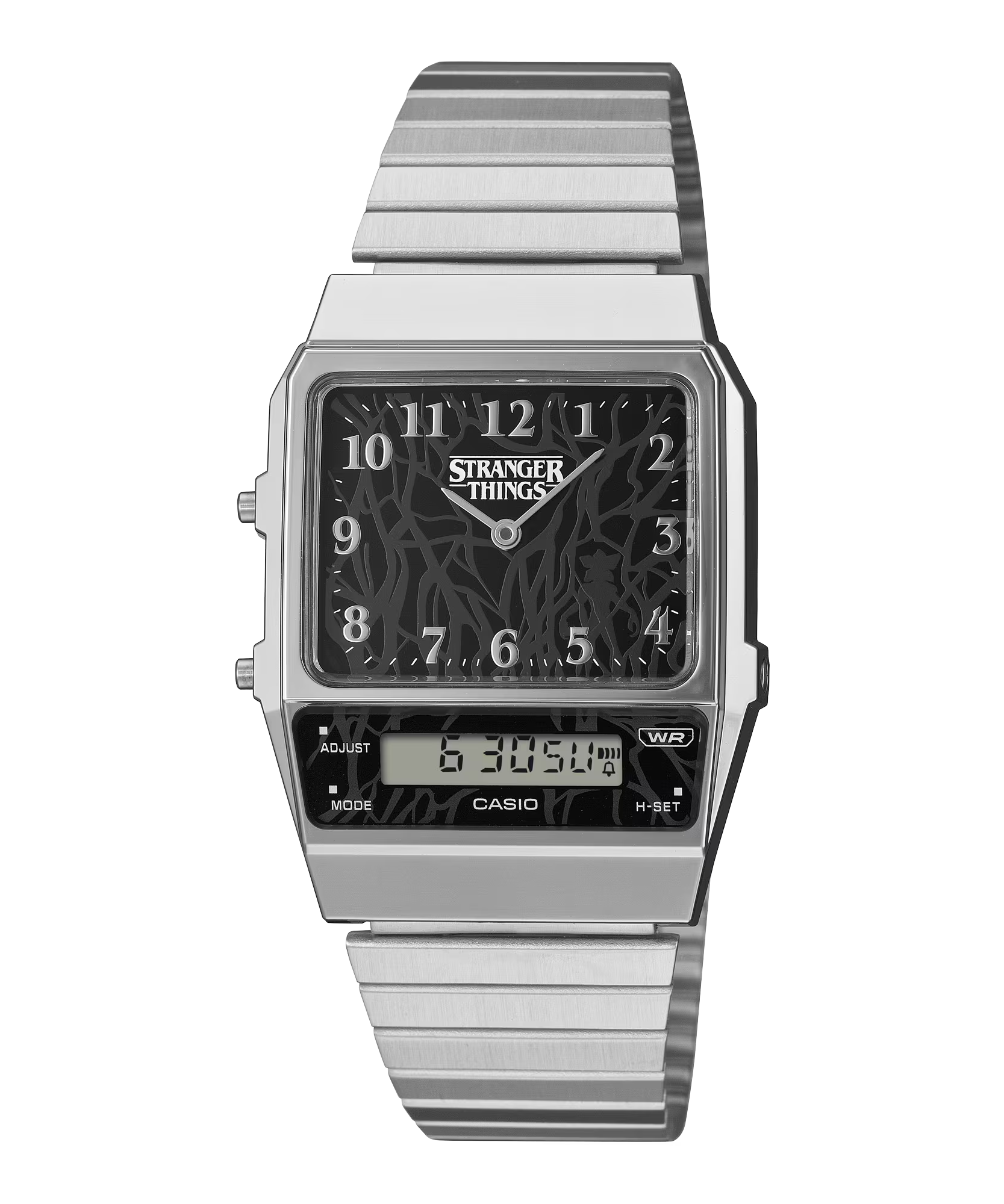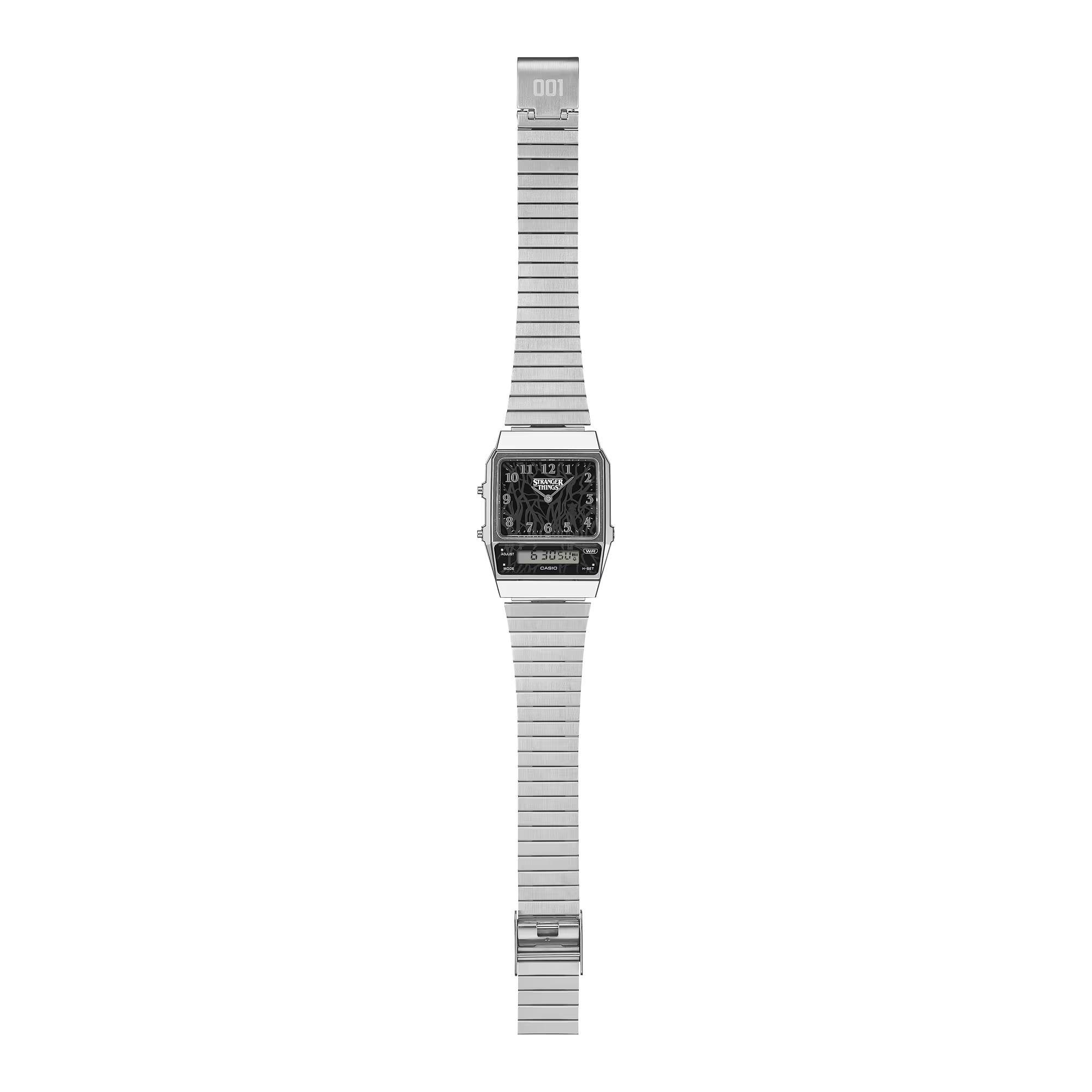 Chiếc đồng hồ này dựa trên mẫu AQ-800. Lấy cảm hứng từ hai thế giới song song của câu chuyện, thực tại quen thuộc và “Thế giới ngược” kỳ quái — thiết kế đã lồng ghép những yếu tố chính của loạt phim vào từng chi tiết.