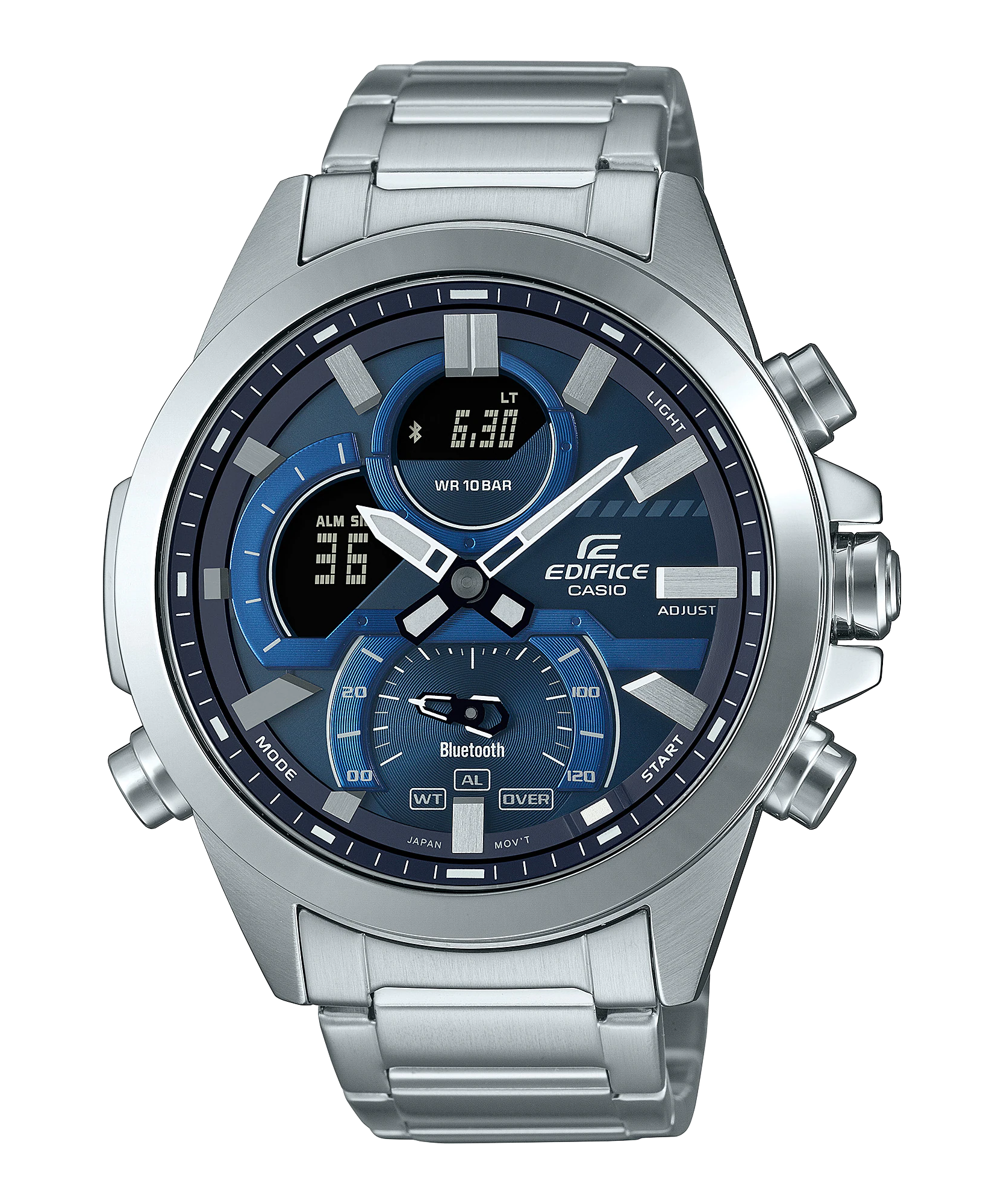 Chào mừng bạn đến với cuộc cách mạng của Tốc độ & Trí tuệ được gói gọn trong chiếc đồng hồ EDIFICE kim loại, sở hữu thông số kỹ thuật và công nghệ cao, mang phong cách trang trọng và có khả năng kết nối dễ dàng với điện thoại thông minh. Với mẫu đồng hồ này, bạn chỉ cần nhấn để đồng bộ hóa với điện thoại thông minh qua Bluetooth® cũng như nhấn vào ứng dụng CASIO WATCHES để sở hữu đầy đủ chức năng trong tầm tay. Ứng dụng này đảm bảo hiển thị giờ hiện hành chính xác khi bạn ở gần điện thoại. Được phát triển nhằm đáp ứng nhu cầu của các đội đua, tính năng hẹn giờ có thể đồng bộ hóa với ứng dụng lịch trên điện thoại thông minh để truyền các mục lịch trình đến điện thoại cũng như hiển thị thời gian bắt đầu và kết thúc trên màn hình LCD của đồng hồ. Đồng hồ trang bị đèn LED phát sáng mỗi khi bạn nghiêng cổ tay. Thiết kế mặt cơ khí lấy cảm hứng từ những chiếc xe thể thao làm tăng chiều sâu và tính đa chiều nhằm tôn lên vẻ ngoài năng động, sức mạnh và độ cứng cáp của những chiếc xe hiệu suất cao này.