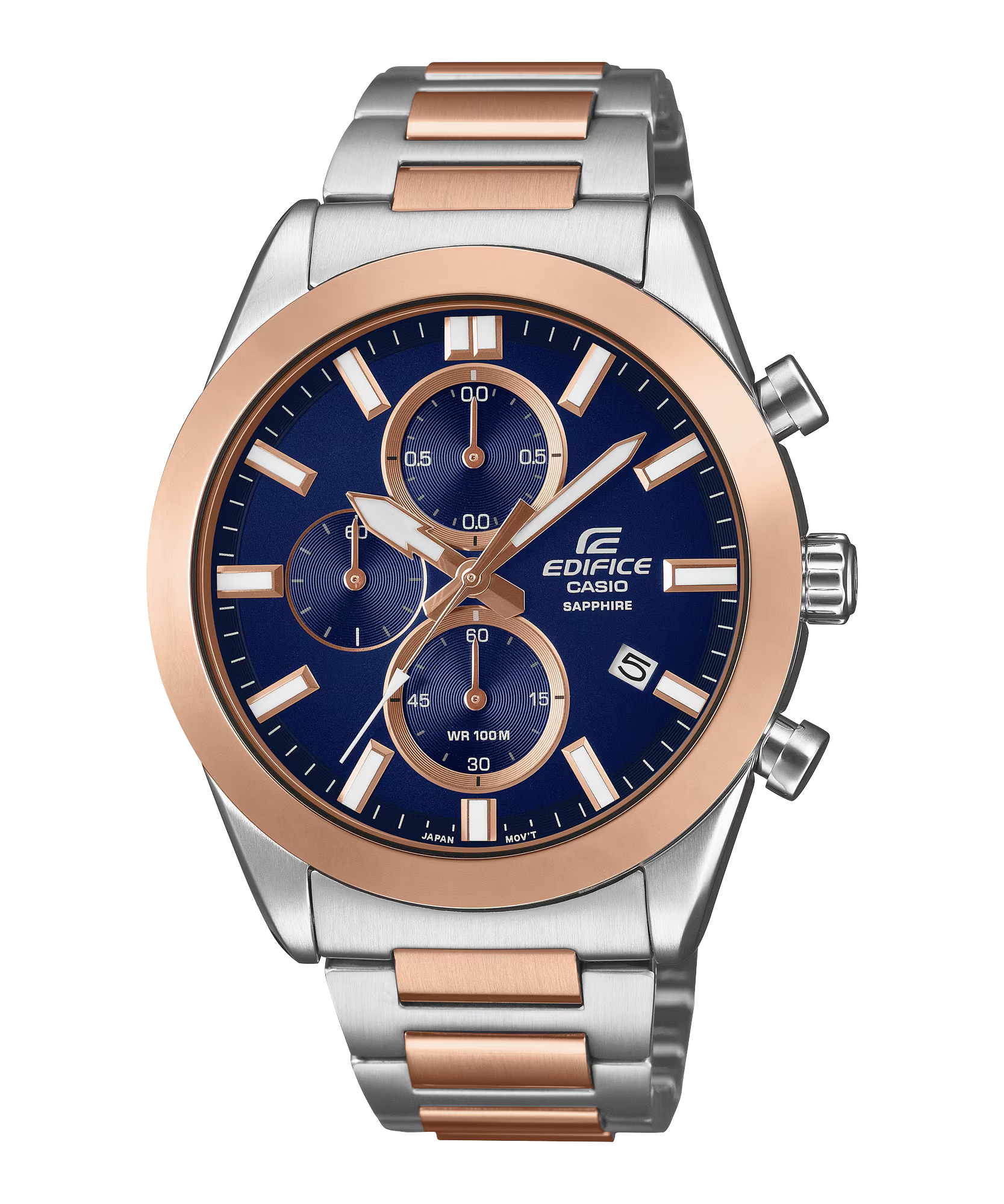 Xin chào tất cả những người đam mê xe hơi và thể thao tốc độ! Xin giới thiệu chiếc đồng hồ đeo tay EDIFICE hai tông màu bạc và vàng thời trang, tích hợp nhiều chức năng giúp bạn theo dõi đường đua cả ngày.