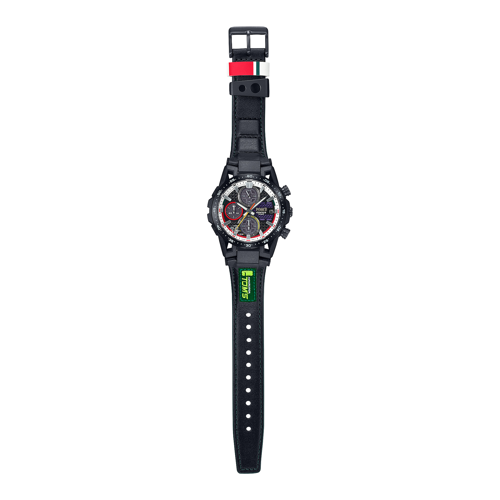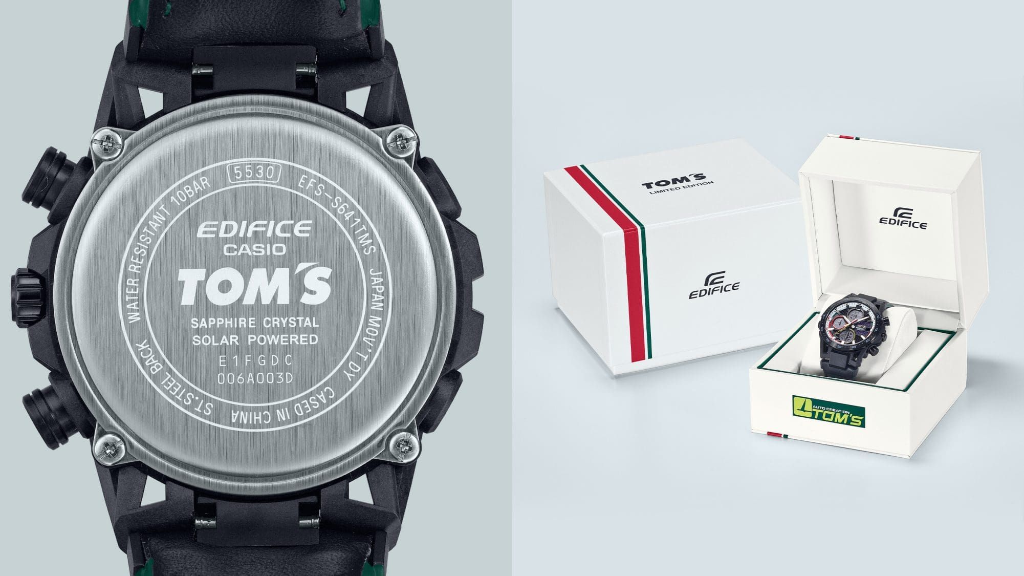 Chúng ta đến với EDIFICE PHIÊN BẢN KỶ NIỆM 50 NĂM CỦA TOM’S, sản phẩm tôn vinh chiếc xe đua lịch sử TOM’S KP47 Starlet, đây là chiếc xe đua từ những ngày đầu của TOM’S Racing. Chiếc đồng hồ bấm giờ phong cách thể thao hiệu suất cao EDIFICE này được thiết kế để kỷ niệm 50 năm thành lập đội đua.Sự kết hợp này nhằm tôn vinh chiếc KP47 Starlet đặc biệt đã giúp TOM’S Racing trở nên nổi tiếng với chuỗi chiến thắng ấn tượng trong các cuộc đua quy mô nhỏ vào những năm 1970: 22 lần chiến thắng ở buổi đua phân hạng, 20 lần chiến thắng và 3 lần giành chức vô địch mùa giải. Trắng, đỏ và xanh lá cây — những màu sắc tượng trưng cho hình ảnh dũng mãnh của chiếc xe đua — được sử dụng trên mặt số và các bộ phận khác của chiếc đồng hồ.Mặt số hình tổ ong gợi nhớ đến lưới tản nhiệt phía trước của chiếc TOM’S Starlet với màu tím làm nổi bật vỏ động cơ của xe, mặt số bên trong lấy cảm hứng từ bánh xe TOM’S Igeta và logo TOM’S. Dây đeo bằng da thật gợi nhớ đến trục ở giữa khung xe KP47 B và dây đeo bằng kim loại có kiểu dáng giống như gương chiếu hậu của xe. Vòng dây đeo, nằm trong bảng màu của KP47 Starlet, được trang trí bằng logo đầu tiên của TOM’S, mang lại cảm giác hoài cổ của những ngày đầu. Viền màu xanh lá cây trên vòng dây đeo gợi nhớ đến vạch màu xanh lá cây đặc trưng trên KP47 và số xe 36 của chiếc át chủ bài của TOM’S được in bằng thủy tinh ở mốc 36 phút.Mẫu đồng hồ này dựa trên đồng hồ bấm giờ chạy bằng năng lượng mặt trời EFS-S641 SOSPENSIONE và có vỏ nhựa gia cố bằng sợi carbon, sạc pin bằng năng lượng mặt trời và mặt kính sapphire với lớp phủ chống phản quang ở bề mặt bên trong.Mẫu đồng hồ EDIFICE niệm 50 năm của TOM’S là sản phẩm đặc biệt — đây là sự hợp tác chân tình giữa hai đội có chung niềm đam mê với xe thể thao và là điều mà người hâm mộ TOM’S thực sự trân trọng.