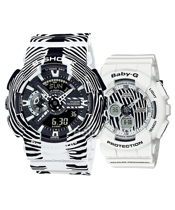 Tham gia phong trào bảo vệ các loài động vật quý hiếm sắp tuyệt chủng của hành tinh chúng ta với bộ sưu tập thiết kế cộng tác đặc biệt cùng Wildlife Promising. Năm 2021 này, G-SHOCK và BABY-G G-MS một lần nữa cùng chung tay vinh danh sứ mệnh của tổ chức phi lợi nhuận này trong việc bảo vệ động vật hoang dã, giúp con người và các loài động vật ở Châu Phi có thể chung sống hoà bình. Khẳng định phong cách bằng bộ đồng hồ đôi với những đường sọc trắng đen tinh tế lấy cảm hứng từ loài ngựa vằn Grevy bản địa của Kenya, đã được đăng ký là loài có nguy cơ tuyệt chủng theo Công ước Washington. Đồng hồ kim số vỏ lớn của G-SHOCK kết hợp với thiết kế thể thao của BABY-G tôn vinh việc bảo tồn thiên nhiên hoang dã, với logo của Wildlife Promising khắc trên dây đeo và vòng dây. Dòng chữ Love the Sea and the Earth khắc trên lưng vỏ như một lời nhắc nhở nhẹ nhàng để bạn luôn lưu giữ trong tim một hình ảnh thiên nhiên Châu Phi hùng vĩ. Bao bì thiết kế đặc biệt với hoa văn ngựa vằn độc đáo. Wildlife Promising Wildlife Promising là một tổ chức phi lợi nhuận đã được chứng nhận, chuyên giải quyết những vấn đề liên quan đến việc bảo tồn động vật hoang dã và việc chung sống giữa con người và động vật hoang dã tại Châu Phi. Tổ chức này hiện đang tập trung vào loài báo hoa mai hoang dã sống ở Kenya, một quốc gia phía tây Châu Phi. Các nghiên cứu bảo tồn sinh thái cũng được tiến hành quanh thủ đô Nairobi, trong Khu bảo tồn quốc gia Maasai Mara và ở phía bắc Kenya, chú trọng vào sự tương tác giữa động vật hoang dã với con người. Dựa trên nghiên cứu khoa học này, tổ chức mong muốn tạo ra môi trường sống tốt hơn cho cả động vật hoang dã lẫn con người thông qua các hoạt động xã hội và bảo tồn.