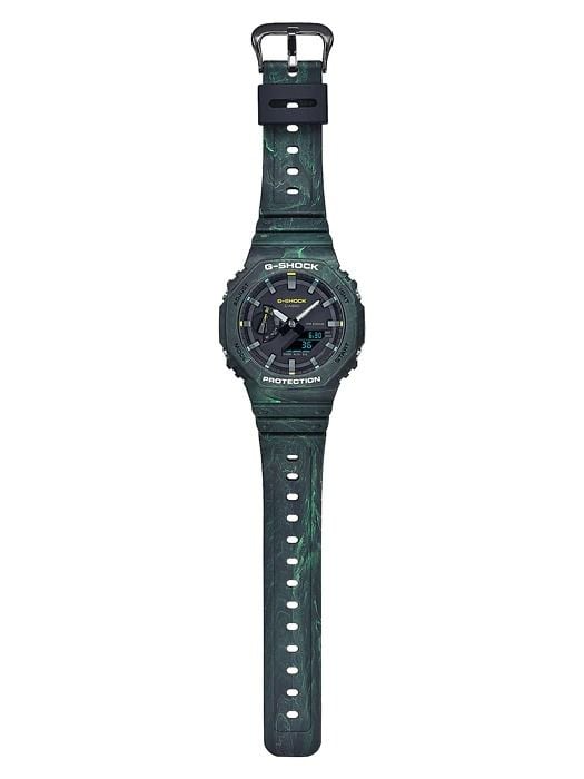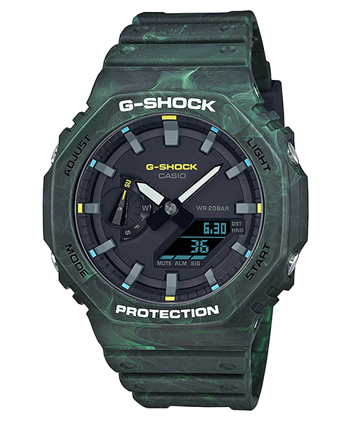 Bước chân vào những khu rừng sương phủ và phong cảnh huyền bí với những màu sắc trầm của G-SHOCK, được thiết kế để khơi gợi sự bí ẩn. Với đường gờ và dây đeo chế tác bằng nhựa đúc nhiều màu, những chiếc đồng hồ dòng Khu rừng thần bí này có bề mặt độc đáo mô phỏng những đường xoáy màu xanh lá và vàng, nâu và cam.