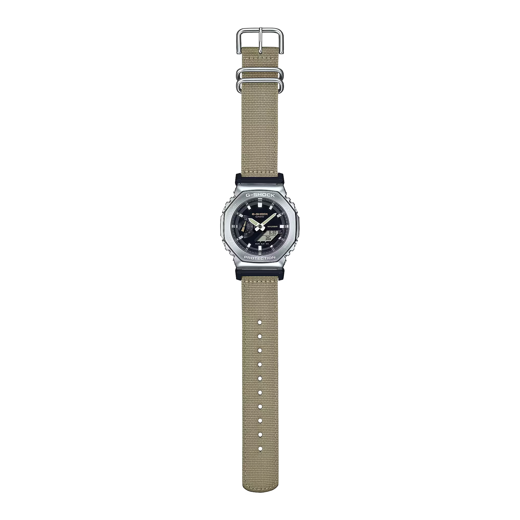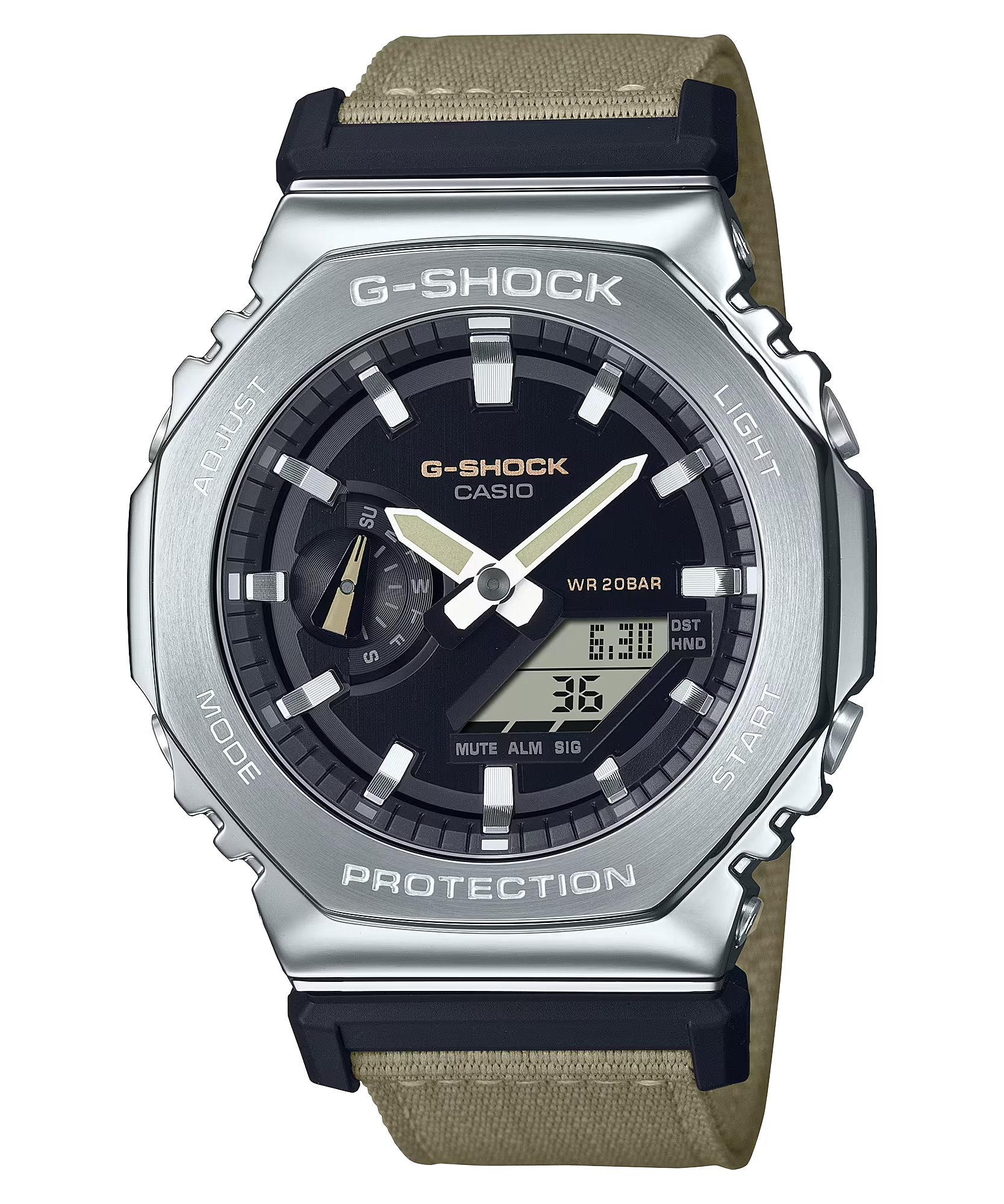 Bổ sung vài nét thiết thực cho phong cách của bạn với mẫu đồng hồ G-SHOCK từ bộ sưu tập Utility Metal. Những chiếc đồng hồ sáng tạo này có hình bát giác đặc trưng và có thiết kế phủ kim loại của dòng GM-2100, kết hợp với dây đeo bằng vải trẻ trung với màu sắc thiết thực, phù hợp với mọi trang phục. Nét tương phản nổi bật giữa kim loại và vải tạo nên một phong cách gai góc, thể hiện độ cứng cáp và tinh tế, giản dị.
