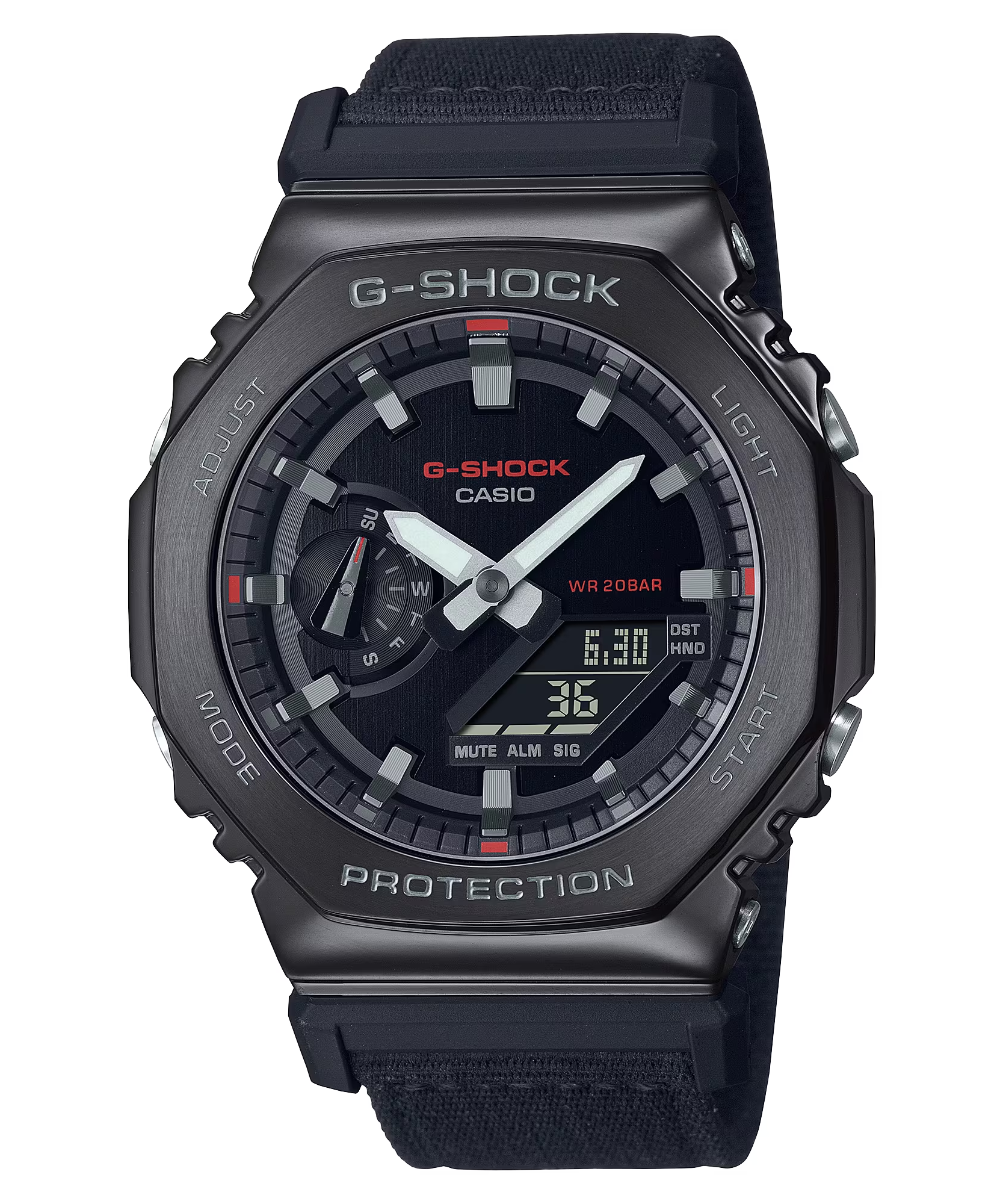 Bổ sung vài nét thiết thực cho phong cách của bạn với mẫu đồng hồ G-SHOCK từ bộ sưu tập Utility Metal. Những chiếc đồng hồ sáng tạo này có hình bát giác đặc trưng và có thiết kế phủ kim loại của dòng GM-2100, kết hợp với dây đeo bằng vải trẻ trung với màu sắc thiết thực, phù hợp với mọi trang phục. Nét tương phản nổi bật giữa kim loại và vải tạo nên một phong cách gai góc, thể hiện độ cứng cáp và tinh tế, giản dị.