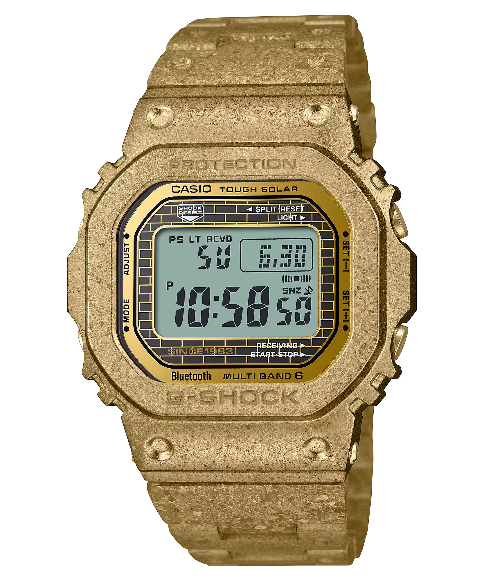 Dòng GMW-B5000 bổ sung phiên bản làm hoàn toàn bằng kim loại nguyên bản vốn đã xuất hiện trên mẫu G-SHOCK đầu tiên. Thiết kế độc đáo này có họa tiết ngụy trang khác biệt được trừu tượng hóa từ mạch điện của số mô đun 3459 trên mẫu GMW-B5000. Họa tiết được làm bằng lớp mạ ion màu đen và khắc laser, xuất hiện ở cả mặt trước và sau lớp mạ ion tạo nên điểm nhấn đổ bóng cho hoa văn thêm phần đa dạng và có chiều sâu. Được chế tạo bằng hợp kim titan TranTixxii® do Tập đoàn thép Nippon phát triển, chiếc đồng hồ này mang lại cảm giác nhẹ nhàng, thoải mái của titan khi tiếp xúc với da. Chất liệu này có bề mặt cứng gần gấp đôi so với titan thông thường, tạo nên vẻ đẹp hoàn thiện với toàn bộ mặt gương, không hề kém cạnh so với thép không gỉ. Khẳng định tầm ảnh hưởng tối đa với mẫu đồng hồ G-SHOCK ấn tượng làm hoàn toàn bằng kim loại.