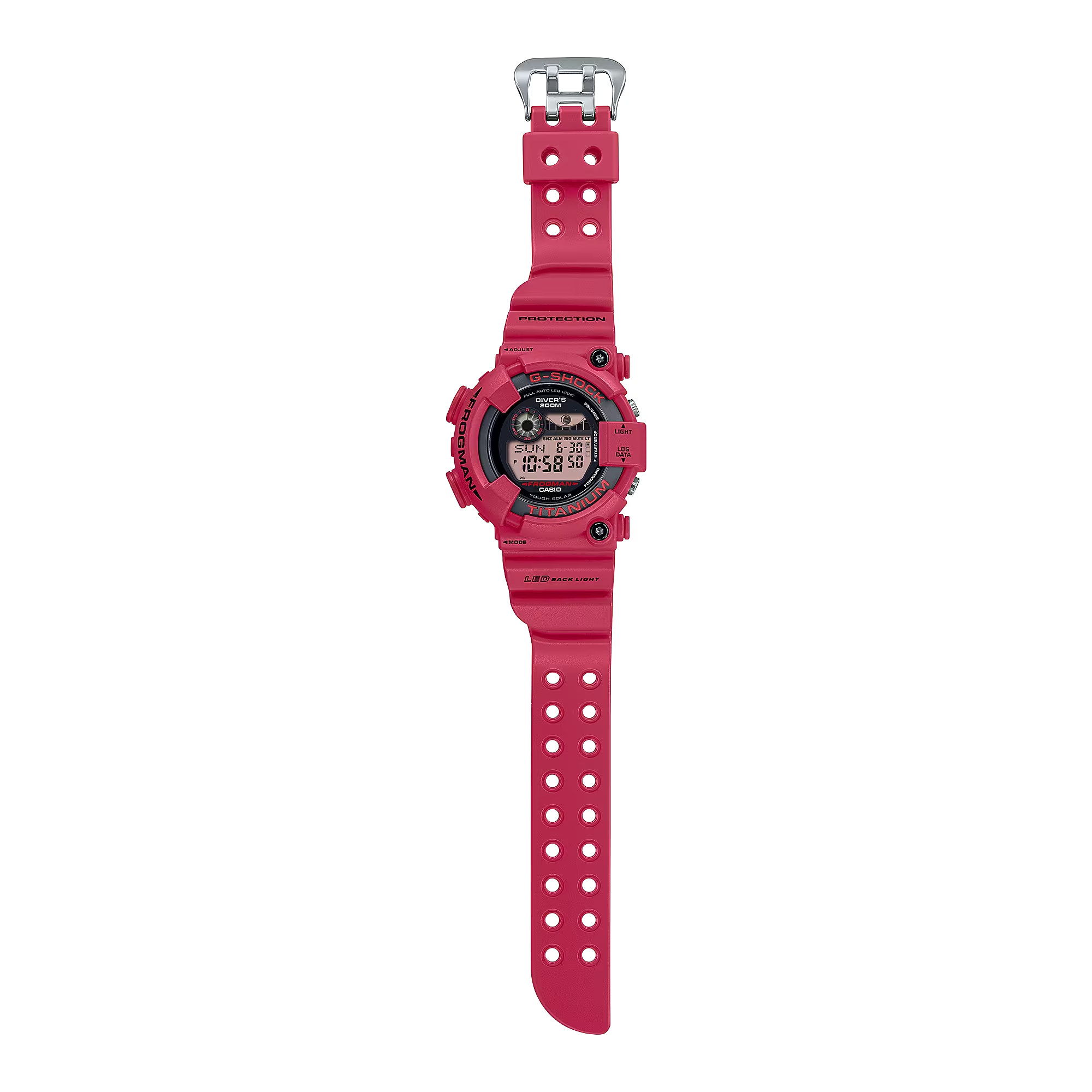 Hòa mình vào lễ kỷ niệm 30 năm ra đời dòng đồng hồ G-SHOCK Master of G Frogman dành cho thợ lặn chính thức với khả năng chống nước ở độ sâu 200 mét theo tiêu chuẩn ISO. Đây là mẫu kỷ niệm thứ ba đánh dấu 30 năm kể từ khi mẫu FROGMAN đầu tiên ra đời vào năm 1993. Chiếc đồng hồ phiên bản giới hạn này tái hiện lại thiết kế táo bạo của mẫu DW-8200NT ra mắt năm 2000, với hình dáng chú ếch FROGMAN bất đối xứng mang tính biểu tượng cùng màn hình LCD, đường gờ và dây đeo viền đỏ nổi bật. Không chỉ làm hồi sinh thiết kế ban đầu, mẫu đồng hồ này còn được phát triển với trọng tâm là làm giảm tác động đến môi trường. Các loại nhựa resin sinh học thân thiện với môi trường được sử dụng cho đường gờ và dây đeo, trong khi tính năng Tough Solar được cung cấp năng lượng thông qua tấm pin mặt trời được thiết kế đặc biệt để tạo điểm nhấn cho hình dạng mặt số DW-8200. Trên mẫu thiết kế kỷ niệm 30 năm vô cùng đặc biệt này, hình ảnh chú ếch lặn nổi tiếng quen thuộc với những người hâm mộ FROGMAN được khắc ở phần lưng vỏ và hiển thị bằng đèn nền LED.