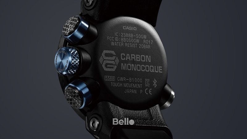 Cấu trúc bảo vệ lõi cacbon chống va đập mới tích hợp vỏ và nắp sau thành lớp vỏ liền bảo vệ mô-đun đồng hồ. Cấu trúc bên ngoài tận dụng đặc điểm sức mạnh và độ gọn nhẹ của vật liệu được sử dụng để cải thiện đáng kể độ bền, đồng thời cho phép sản xuất ra mẫu đồng hồ nhẹ nhất trong dòng GRAVITYMASTER này nặng chỉ 72 gam.