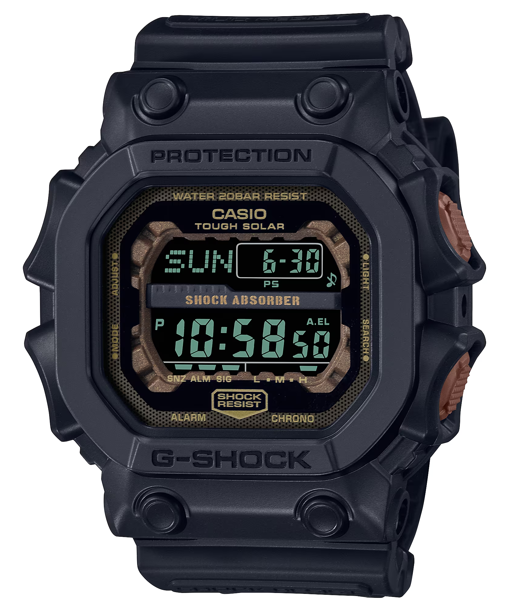 Tạo thêm điểm nhấn cho vẻ ngoài của bạn với mẫu đồng hồ G-SHOCK với thiết kế gợi lên hình ảnh sắt gỉ bền bỉ với thời gian. Những mẫu đồng hồ này ra đời nhằm tôn vinh cuộc hành trình vĩnh cửu nhằm tìm kiếm độ bền tối ưu của G-SHOCK với thiết kế màu đen và gỉ sét kiểu tân cổ điển, gợi lên hình ảnh bền bỉ tuyệt đối của sắt gỉ. Tông màu nâu đỏ lấy cảm hứng từ vẻ ngoài của kết cấu kim loại gỉ sét là nét chấm phá độc đáo trên nền đen cơ bản. Các điểm nhấn màu xanh nhạt tạo nên phong cách vượt thời gian với nét tinh tế, mộc mạc.