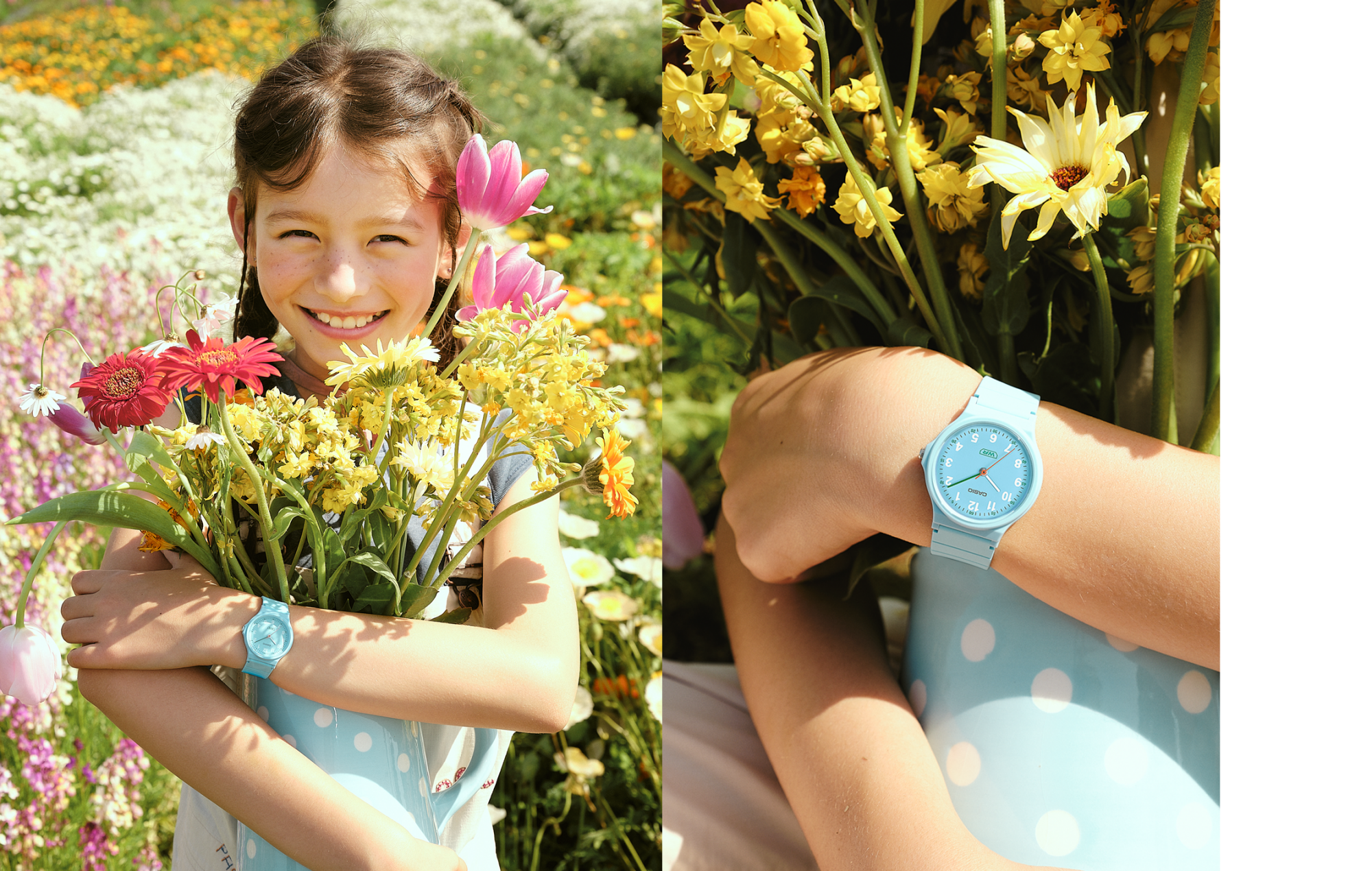 Kim giờ và kim phút được tô màu để khớp với các vạch chỉ giờ tương ứng, do đó, thật dễ dàng để biết thời gian — khiến đây trở thành chiếc đồng hồ lý tưởng đầu tiên.