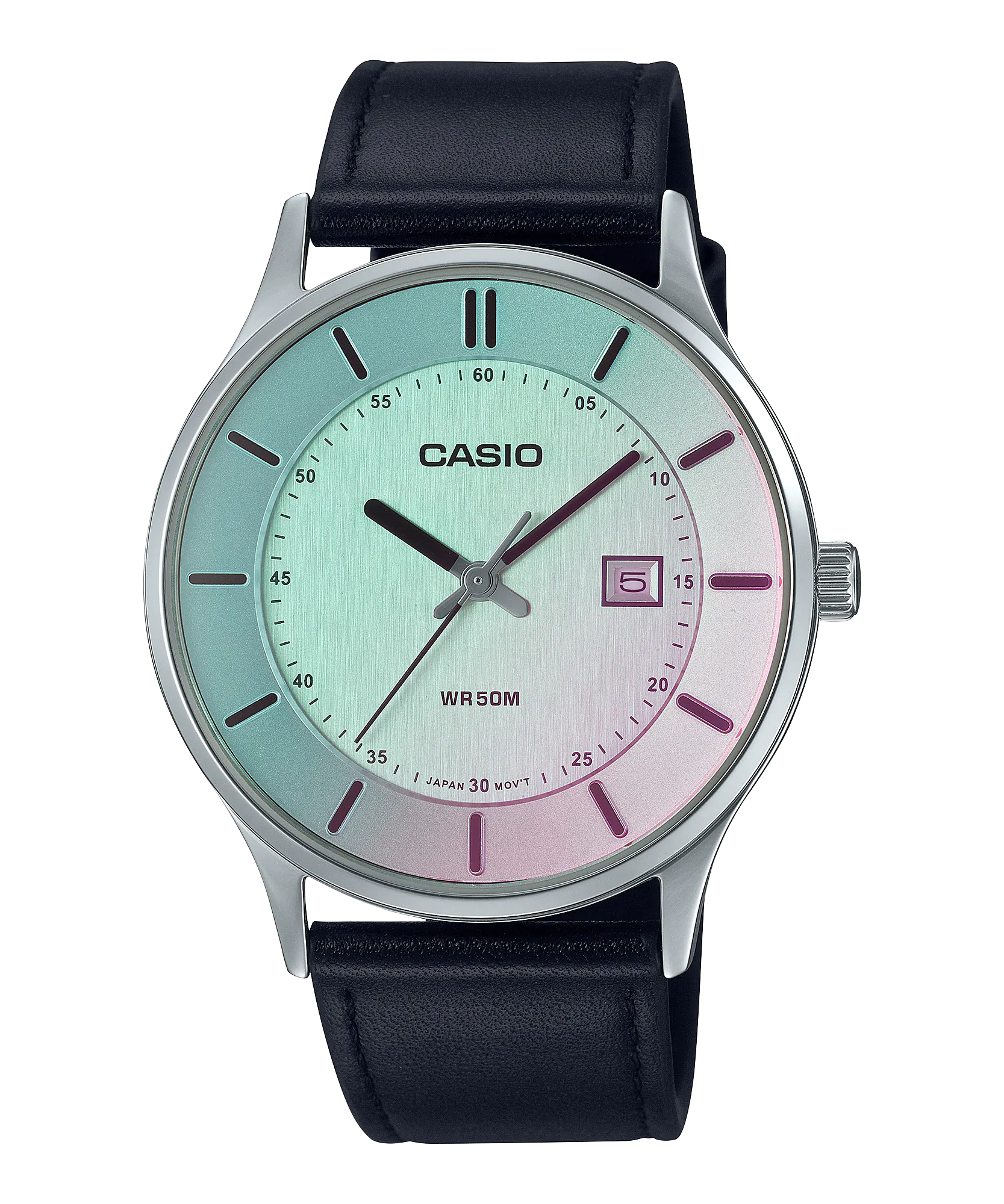 Thưởng thức sắc màu cuộn xoáy với mẫu đồng hồ mặt kính cực quang được thiết kế theo phong cách cổ điển với kim giờ, phút và giây. Đồng hồ sẽ thay đổi độ sáng màu sắc trên mặt số mỗi khi bạn nghiêng cổ tay, tạo nên phong cách thời trang riêng biệt. Tính năng chống nước ở độ sâu 50 mét giúp bạn sử dụng hàng ngày mà không phải lo lắng ngay cả trong những ngày mưa. Ngoài ra đồng hồ còn hiển thị ngày cho bạn dễ đọc và làm tăng thêm tính tiện dụng.