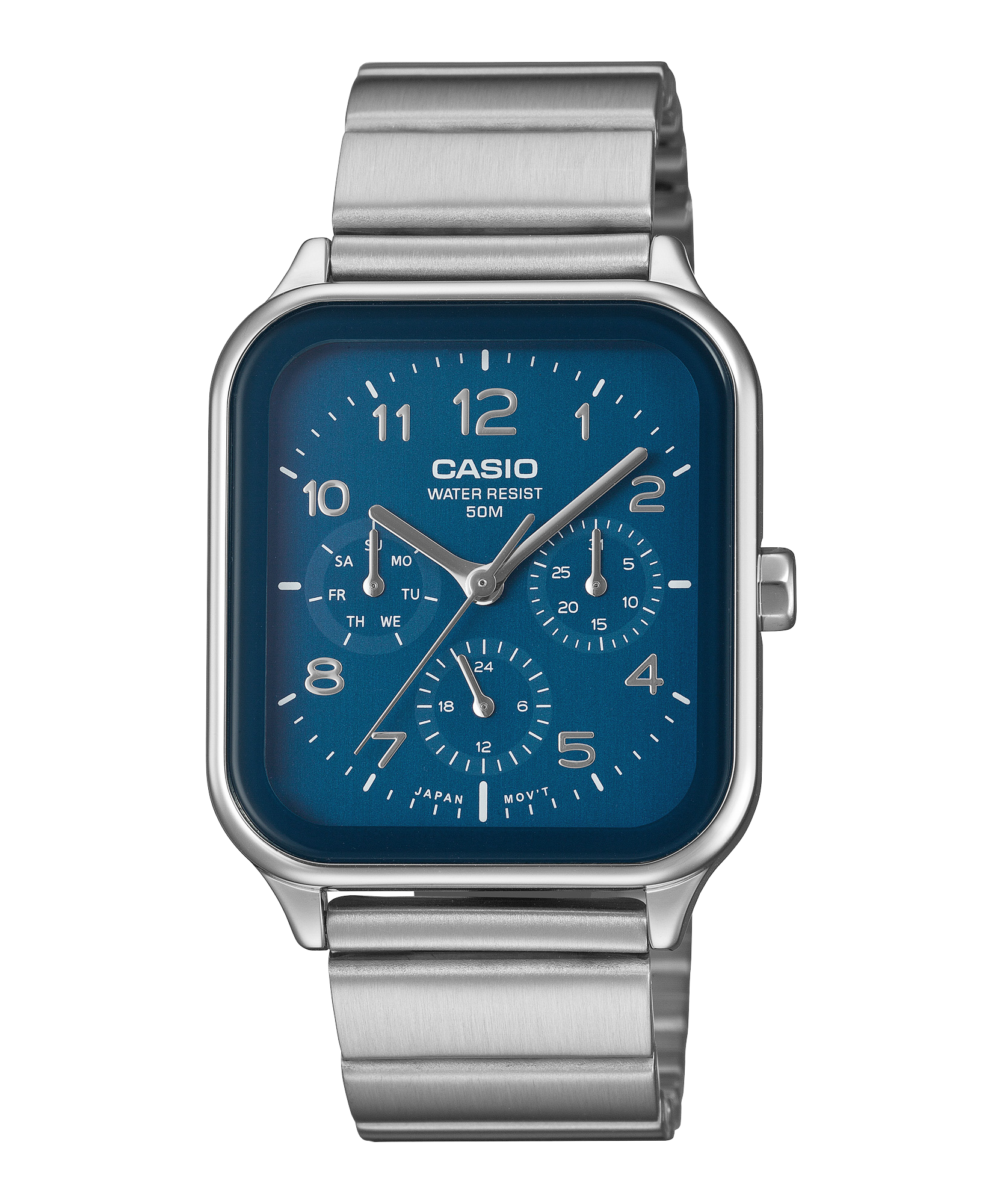 Mặt số lồng tiện dụng hiển thị thứ, ngày và đồng hồ 24 giờ. Tính năng chống nước ở độ sâu 50 mét giúp bạn sử dụng hàng ngày mà không phải lo lắng ngay cả trong những ngày mưa.