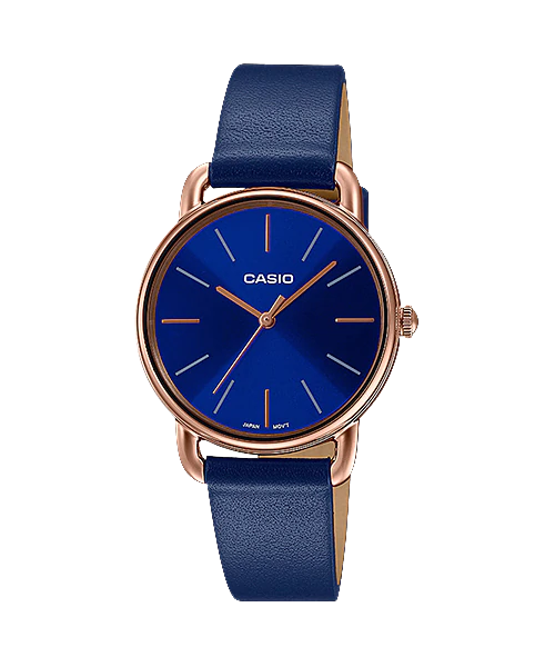 Đồng hồ Casio Nữ LTP-E412PL-2AVDF thiết kế mặt tròn đơn giản, dây da.