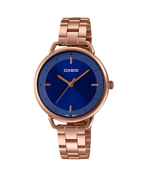 Đồng hồ Casio Nữ LTP-E413PG-2AVDF thiết kế mặt tròn đơn giản, dây kim loại.