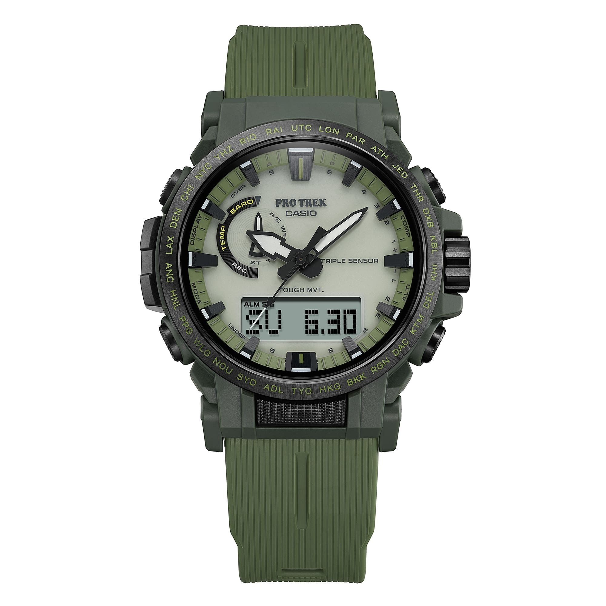 Mang đến tiện ích ngoài trời, mẫu đồng hồ này được trang bị Cảm biến bộ ba (la bàn số, khí áp kế/cao độ kế và nhiệt kế), cũng như khả năng thu sóng vô tuyến Multi-Band 6 từ 6 trạm phát trên khắp thế giới và Tough Solar để cung cấp năng lượng ổn định cho các chức năng này và nhiều hơn nữa. Để có khả năng xem đồng hồ tối ưu, thiết kế có các chỉ số thanh dày để kiểm tra nhanh thời gian, hướng và các chỉ báo khác, cũng như các khe trên dây đeo ở trên và dưới mặt số vốn đóng vai trò là hướng dẫn để đọc nhanh hướng la bàn do kim giây biểu thị.