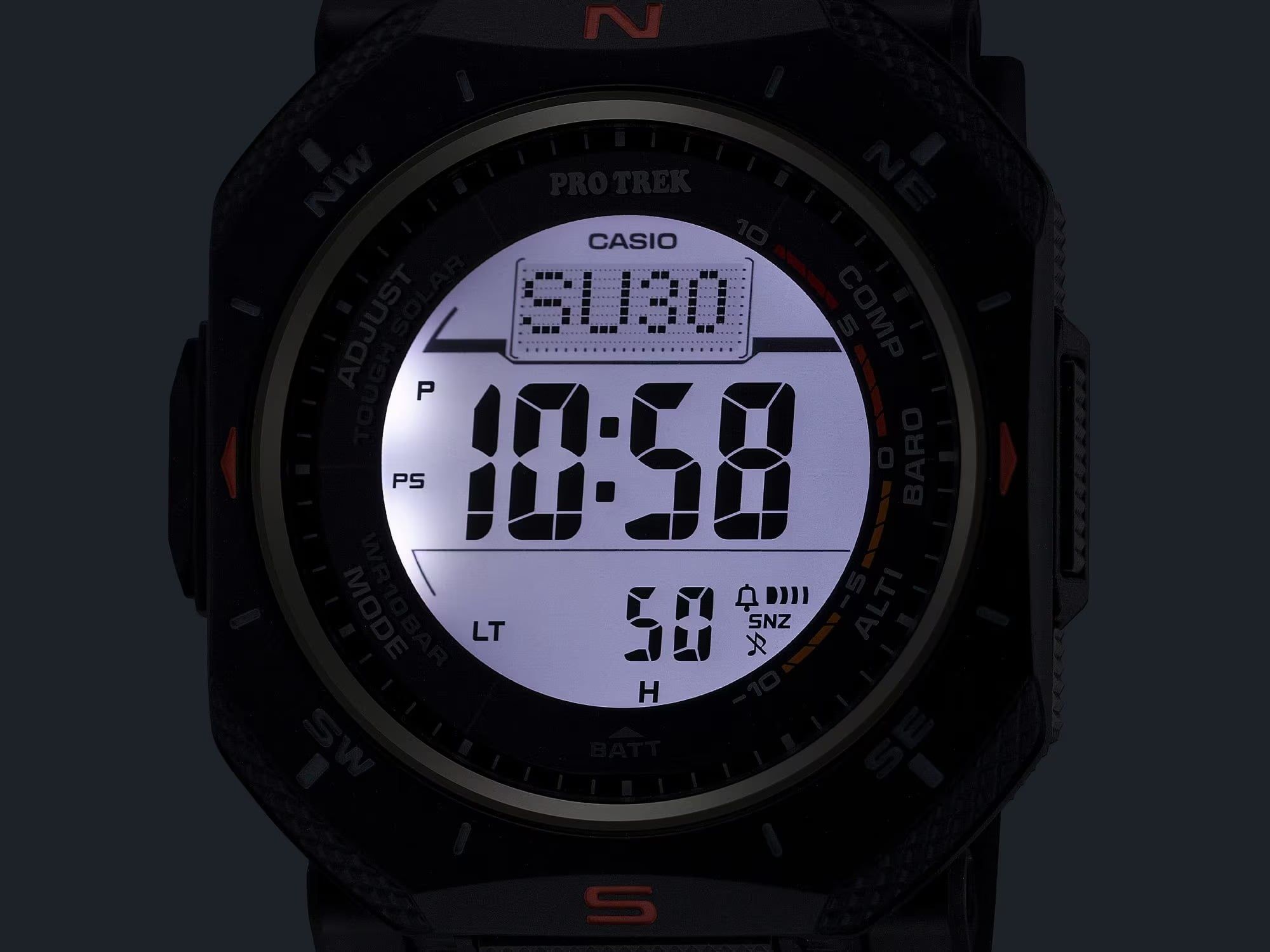 Theo dõi hướng, độ cao và áp suất khí quyển chỉ bằng một nút bấm ở bên phải đồng hồ. Màn hình kỹ thuật số lớn cung cấp khả năng hiển thị tuyệt vời để kiểm tra thông tin trong mọi điều kiện.
