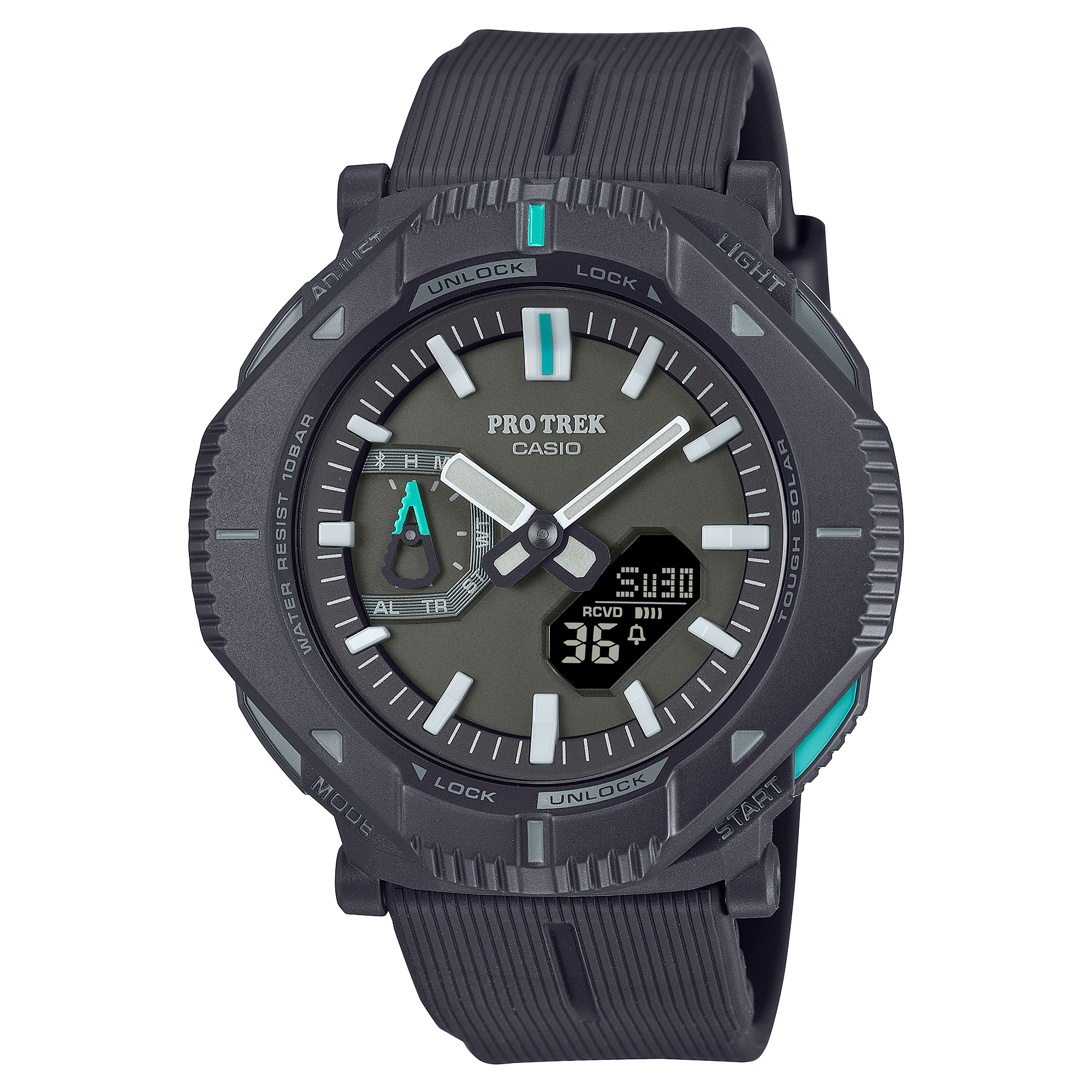 PRJ-B001 nâng tầm thiết bị lên một tầm cao mới với gờ bảo vệ xoay đầu tiên trong dòng PRO TREK. Xoay gờ xoay để chuyển đổi giữa hai phong cách riêng biệt. Khi được đặt để thể hiện một thiết kế góc cạnh đầy phong cách, bổ sung cho phong cách thời trang hàng ngày, gờ bao phủ các nút, ngăn ngừa việc vô tình nhấn nút khi đi bộ ra ngoài hoặc trong thị trấn. Xoay gờ 45 độ để đồng hồ trông tròn hơn và mở các nút để dễ dàng truy cập chức năng khi đi bộ đường dài hoặc tập luyện.