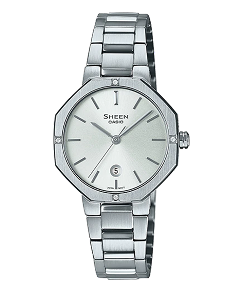 Đồng hồ Casio Nữ Sheen SHE-4543D-7AUDF thiết kế bát giác, mặt đồng hồ saphia chống xước, chống chói.