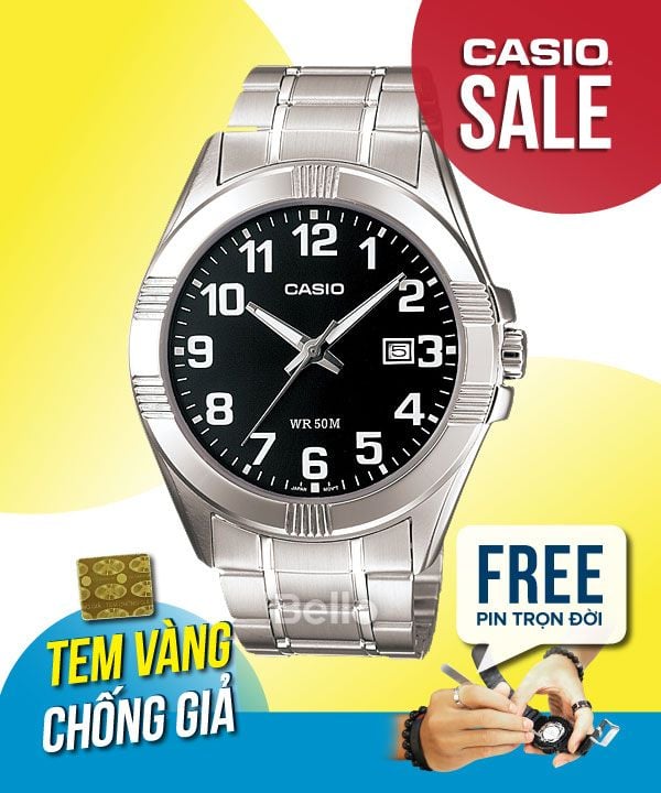 Đồng hồ Casio: Tem Vàng Chống Giả phía sau nắp lưng - Bảo hành 1 Năm toàn quốc cho thân máy - Tặng thẻ thay Pin miễn phí trọn đời - Bello Watch - Đồng hồ Casio Chính hãng Nhật Bản Tại Việt Nam Từ 2009