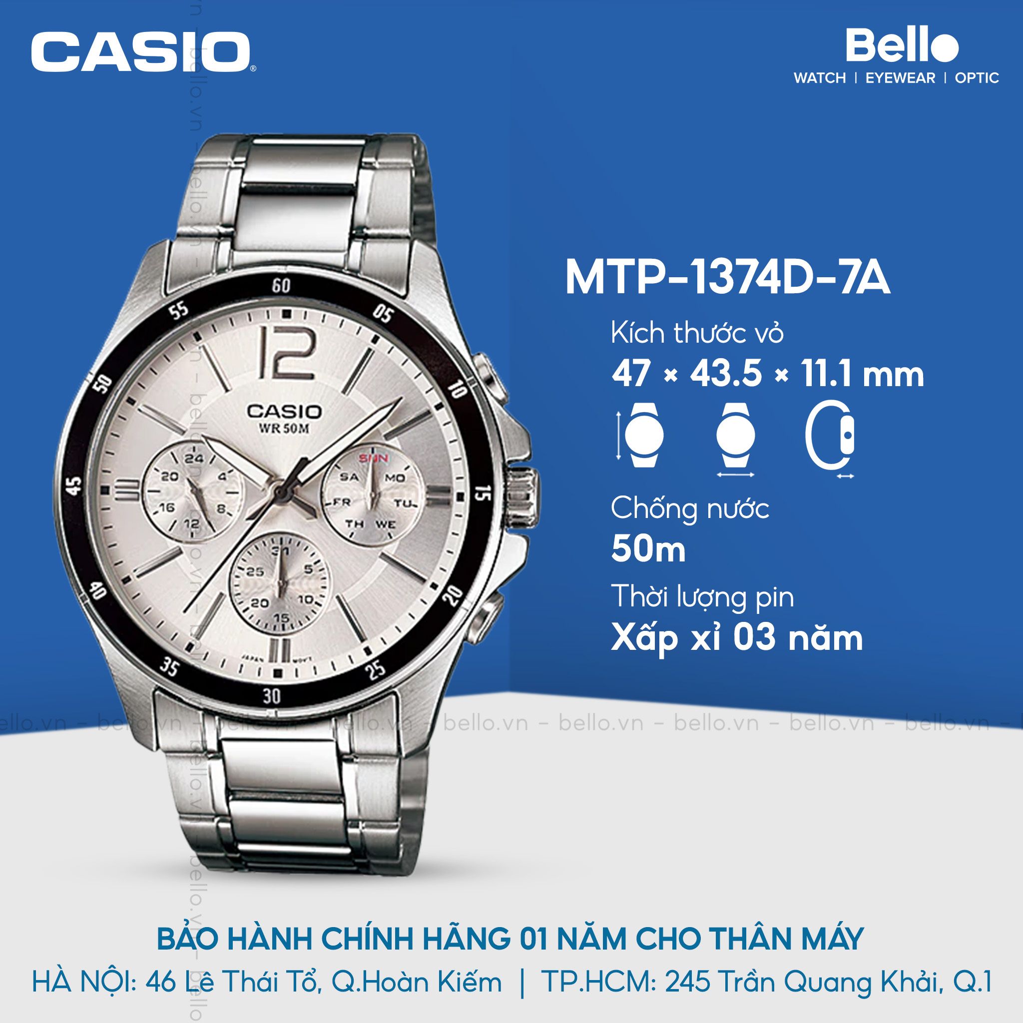 100% Đồng hồ Casio tại Bello đều là hàng chính hãng, phân phối chính thức tại Việt Nam