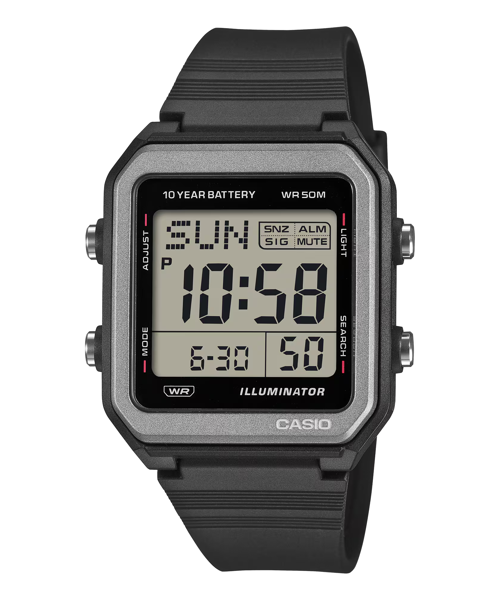 Với màn hình LCD lớn cho khả năng hiển thị vượt trội, đèn nền LED giúp dễ đọc và pin có tuổi thọ 10 năm, chiếc đồng hồ này còn được tích hợp nhiều chức năng tiện dụng như giờ thế giới, đồng hồ bấm giờ, báo thức, hẹn giờ, lịch tự động hoàn toàn và nhiều hơn nữa.