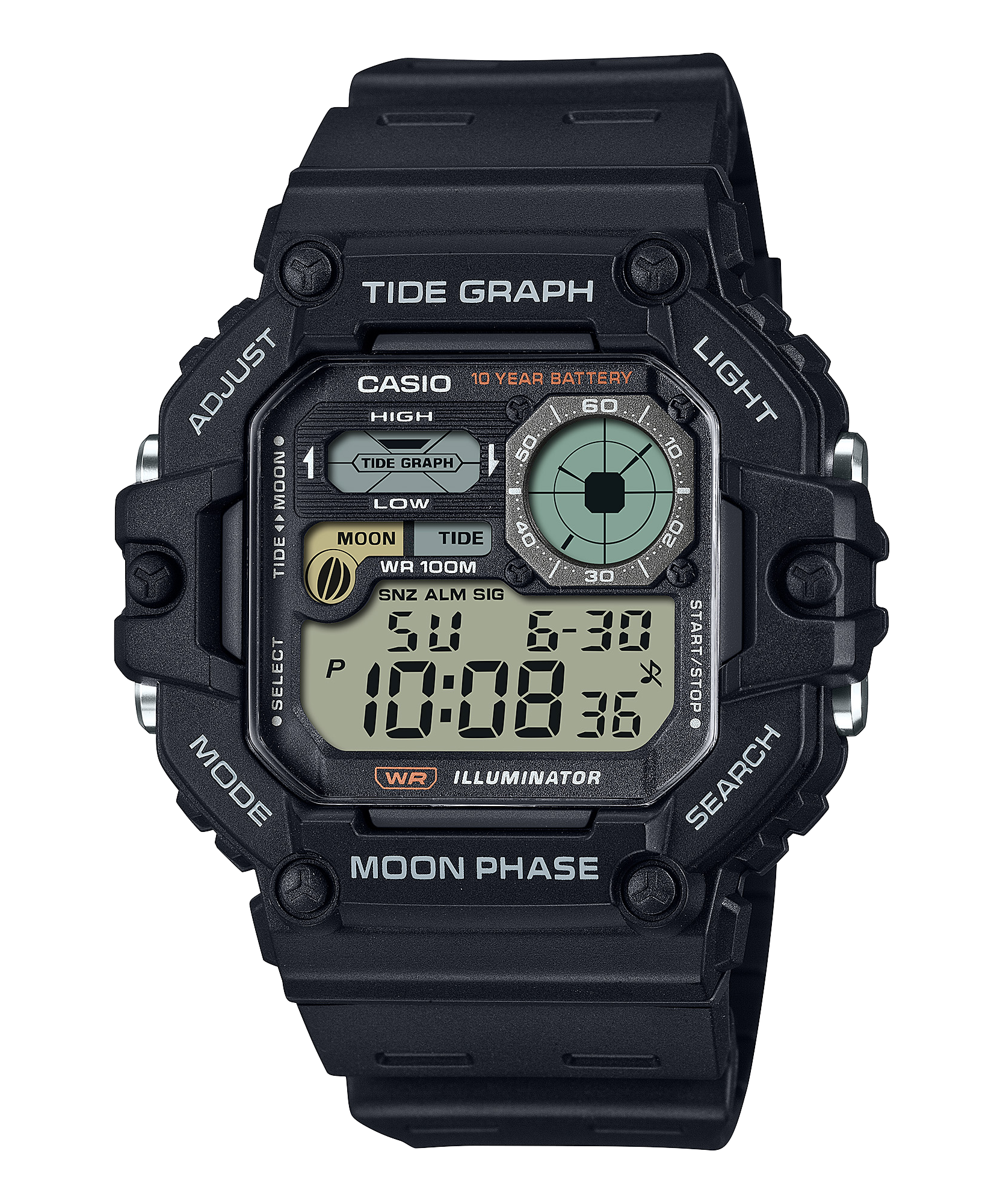 Có nhiều chức năng như kiểu dáng, đồ thị thủy triều, dữ liệu tuần trăng, tuổi thọ pin 10 năm và khả năng chống nước lên đến 100 mét mang đến những gì bạn cần trong những ngày năng động nhất.