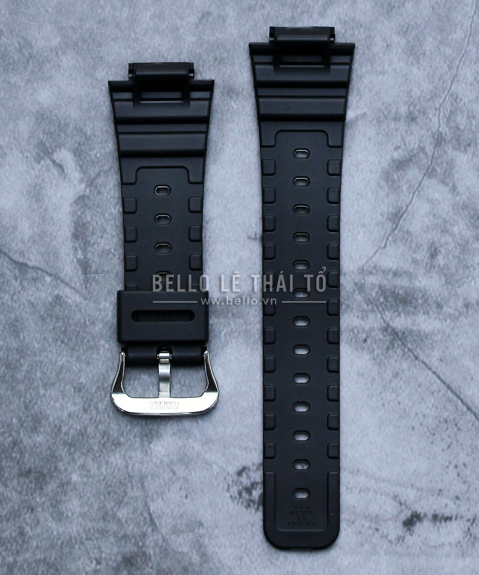 Bello chuyên thay dây đồng hồ Casio, G-Shock, Baby-G, Edifice chính hãng. Đây là phụ kiện Dây đồng hồ Casio chính hãng từ nhà máy Casio - Casio Genuine Factory Parts Dây đen nhám với móc khóa bạc bóng