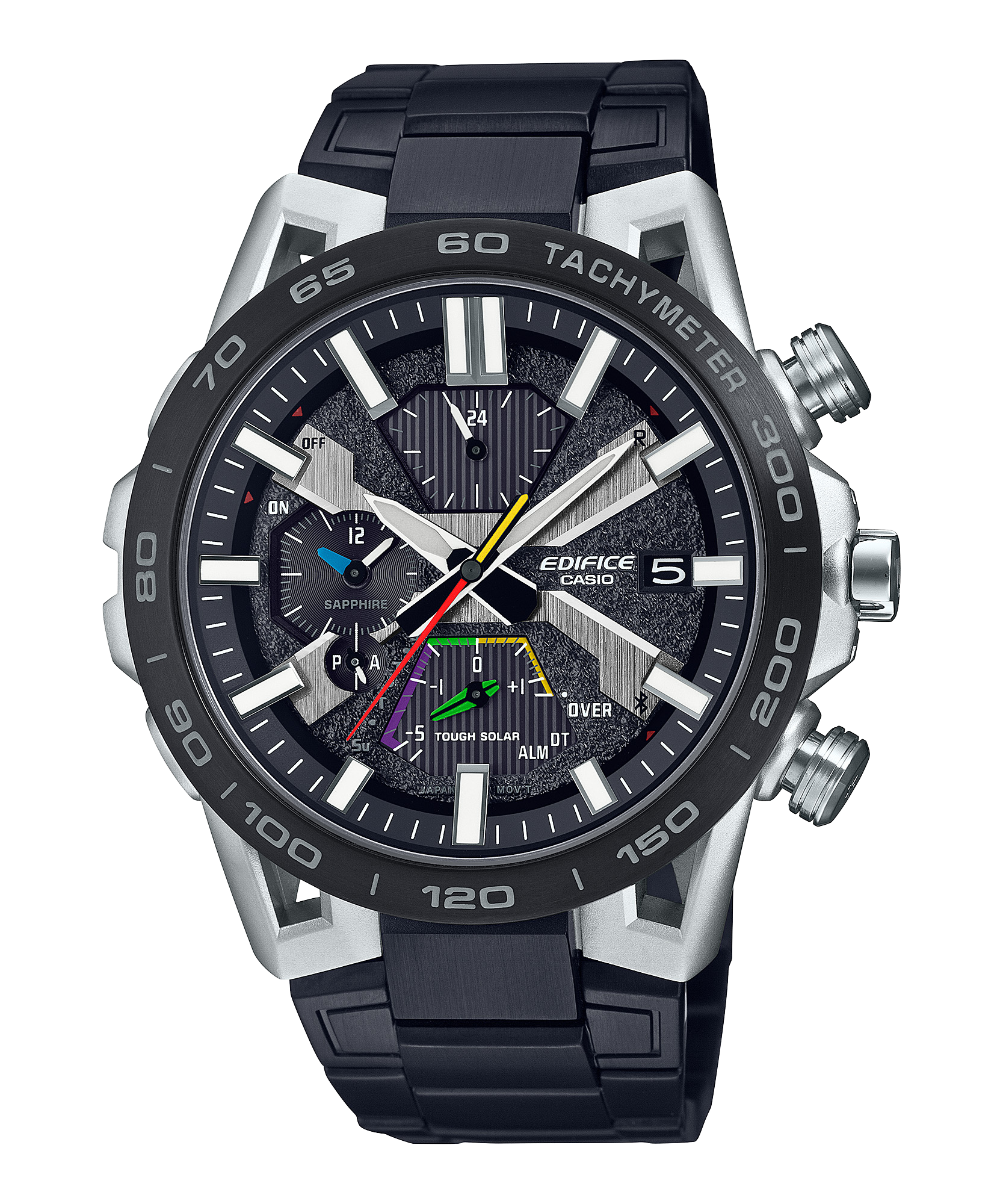 Xin giới thiệu mẫu đồng hồ flagship EDIFICE SOSPENSIONE EQB-2000 sở hữu thiết kế đa năng, tinh tế với kiểu dáng thể thao đích thực. Đồng hồ EDIFICE Speed & Intelligence sở hữu công nghệ sáng tạo, hiệu suất cao với kết cấu vấu bốn tay lấy cảm hứng từ hệ thống giảm xóc dạng xương đòn kép bốn tay trên những chiếc xe đua công thức. Các thành phần mặt số chính đều sở hữu màu sắc giống với vô lăng xe đua giúp bạn nhận diện nhanh chóng. Kim giây màu đỏ cung cấp tầm nhìn vượt trội cho các đội đua, những người luôn phải nỗ lực từng giây. Dây đeo, đường gờ mạ ion và mặt kính saphia tạo nên chiếc đồng hồ chống xước gợi lên dáng vẻ của một chiếc xe đua. Bạn có thể nhanh chóng đồng bộ hóa với điện thoại thông minh của bạn qua Bluetooth®. Nhấn vào ứng dụng để truy cập các chức năng quan trọng dành cho các đội đua, bao gồm chức năng điều chỉnh giờ tự động chính xác đến từng giây, dễ dàng quản lý giờ thế giới và truyền dữ liệu đồng hồ bấm giờ đo được tối đa 200 vòng giây lên đến từng mili giây cho điện thoại thông minh của bạn. Chức năng Tough Solar có thể sạc đồng hồ bằng năng lượng mặt trời hoặc thậm chí từ đèn ánh sáng đèn huỳnh quang, cũng như lưu trữ đủ năng lượng trong 5 tháng ở mức sử dụng bình thường.
