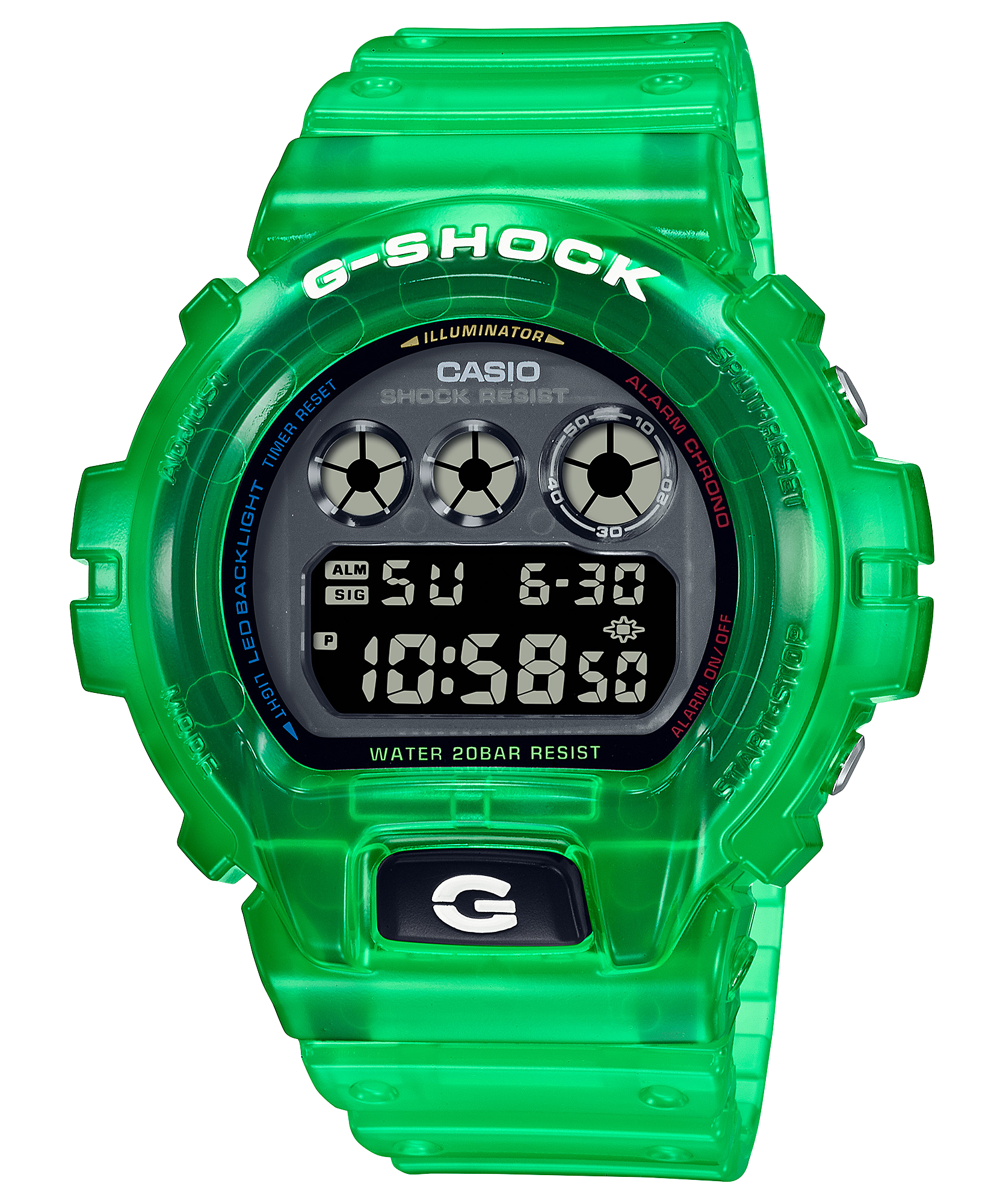 Hân hoan chào đón tương lai với mẫu đồng hồ G-SHOCK trong suốt có màu sắc rực rỡ. Tương lai như được hình dung trong quá khứ trở nên sống động với màu sắc nổi bật và chất liệu trong mờ, với các điểm nhấn đường nét tươi sáng của màu cơ bản. Hãy chọn kiểu dáng bạn yêu thích: mẫu DW-6900 kỹ thuật số cổ điển với thiết kế nút bấm phía trước độc đáo, mẫu DW-5900 với ba đồ thị, hoặc mẫu GA-110 với thiết kế mặt đồng hồ lớn phổ biến.