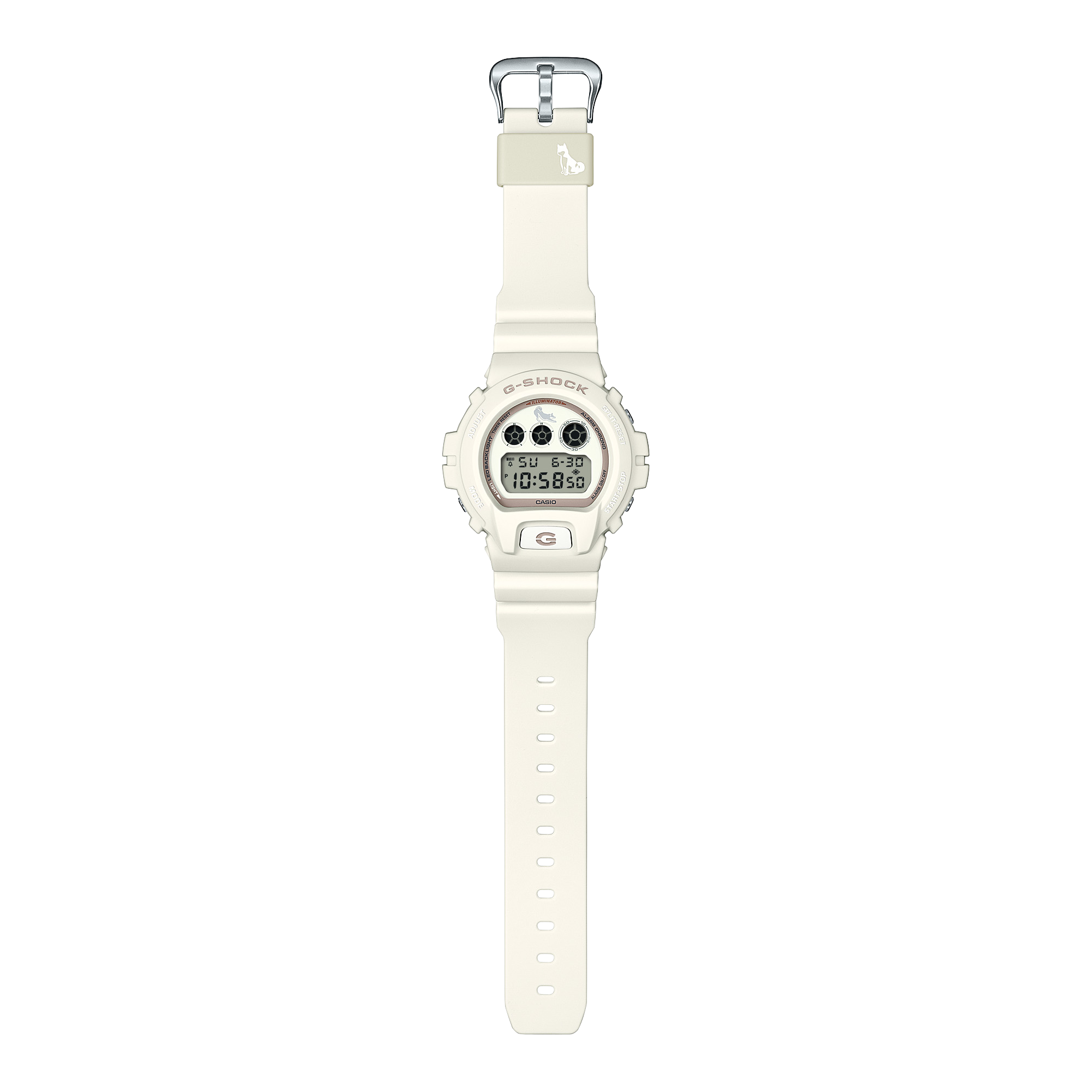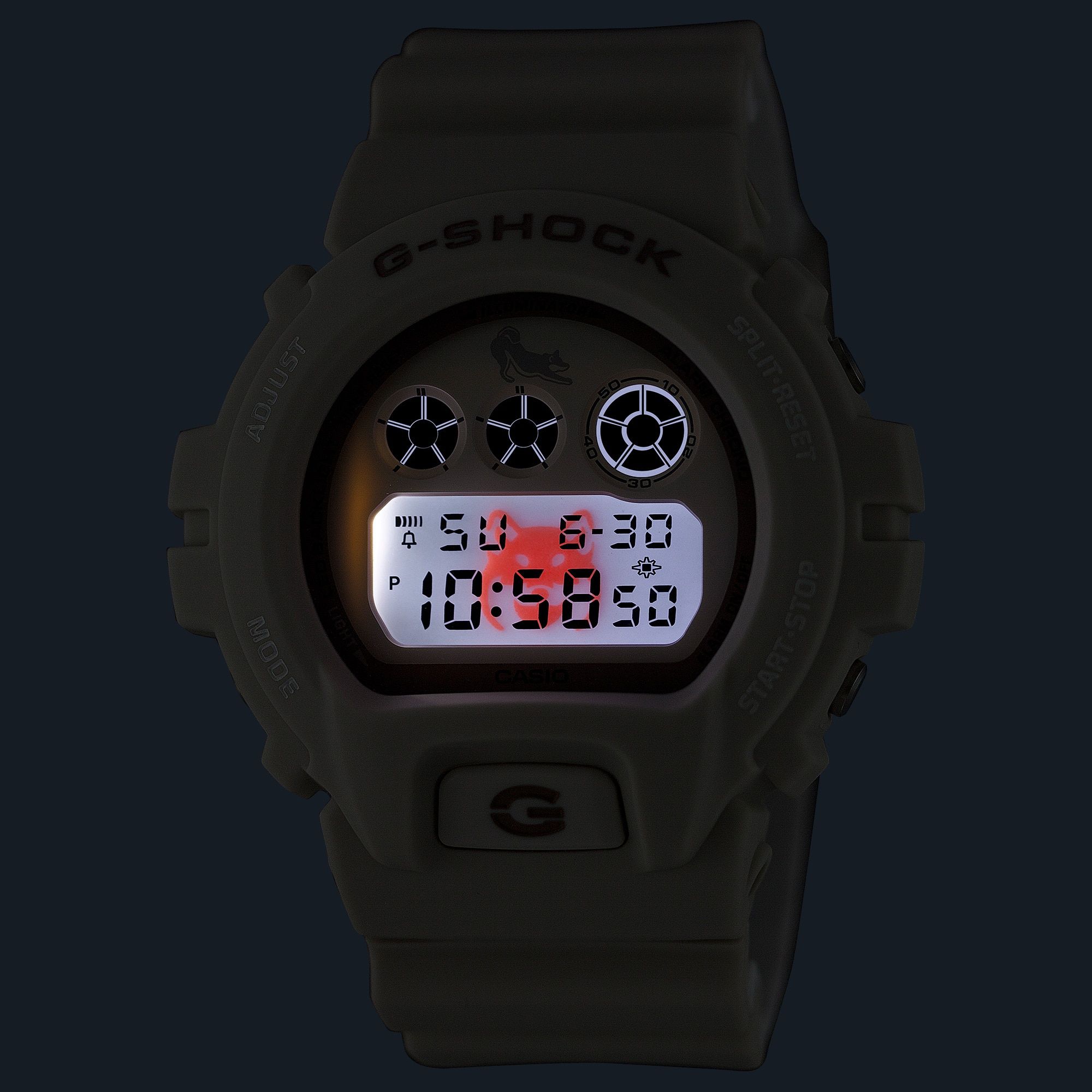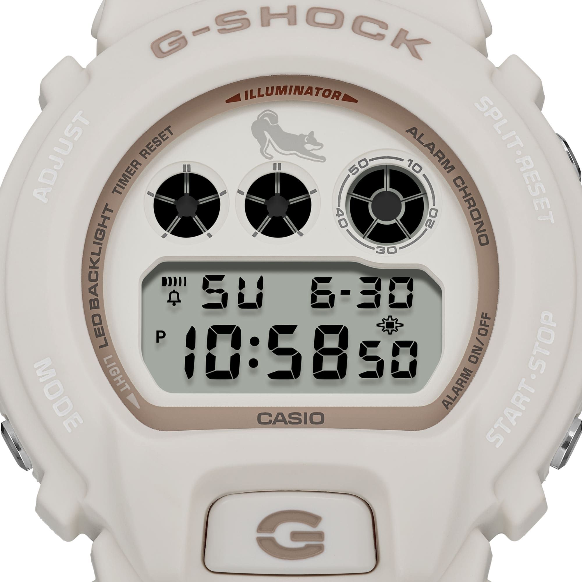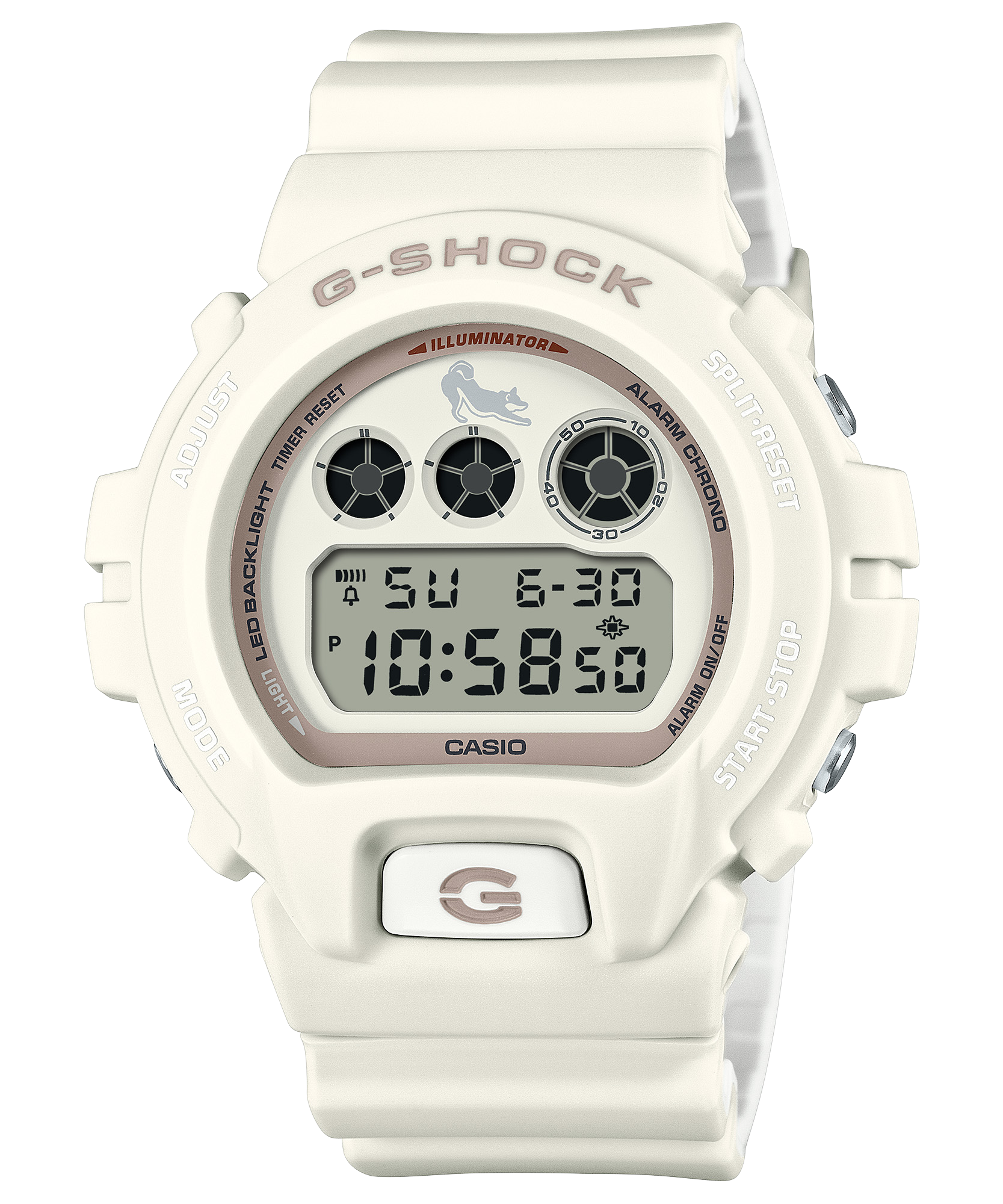 DW-5600SHB: Giống chó Kuro-Shiba màu đen sẽ trở nên sống động với gờ đen và dây đeo hai màu đen với mặt dưới màu trắng ngà gợi liên tưởng đến phần lông ngụy trang của bộ lông Shiba Inu. Nhấn nút đèn để xem cận cảnh khuôn mặt của chú chó trên màn hình. Thiết kế này cũng có hình toàn thân chú chó trên mặt số, vỏ sau và vòng dây đeo.