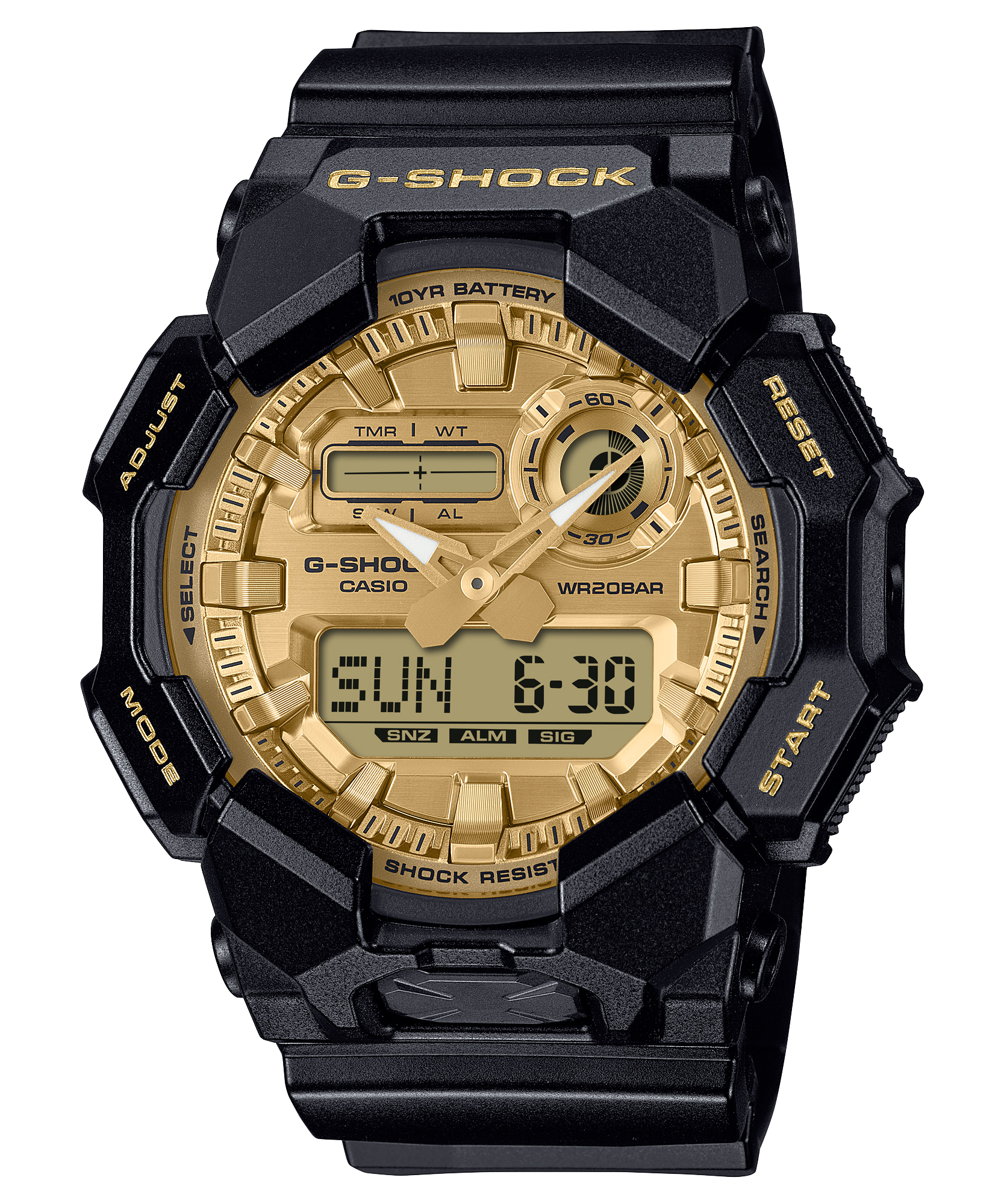 Ngày càng mạnh mẽ hơn. Khẳng định phong cách táo bạo và tự tin bằng G-SHOCK với sắc đen và vàng nổi bật.