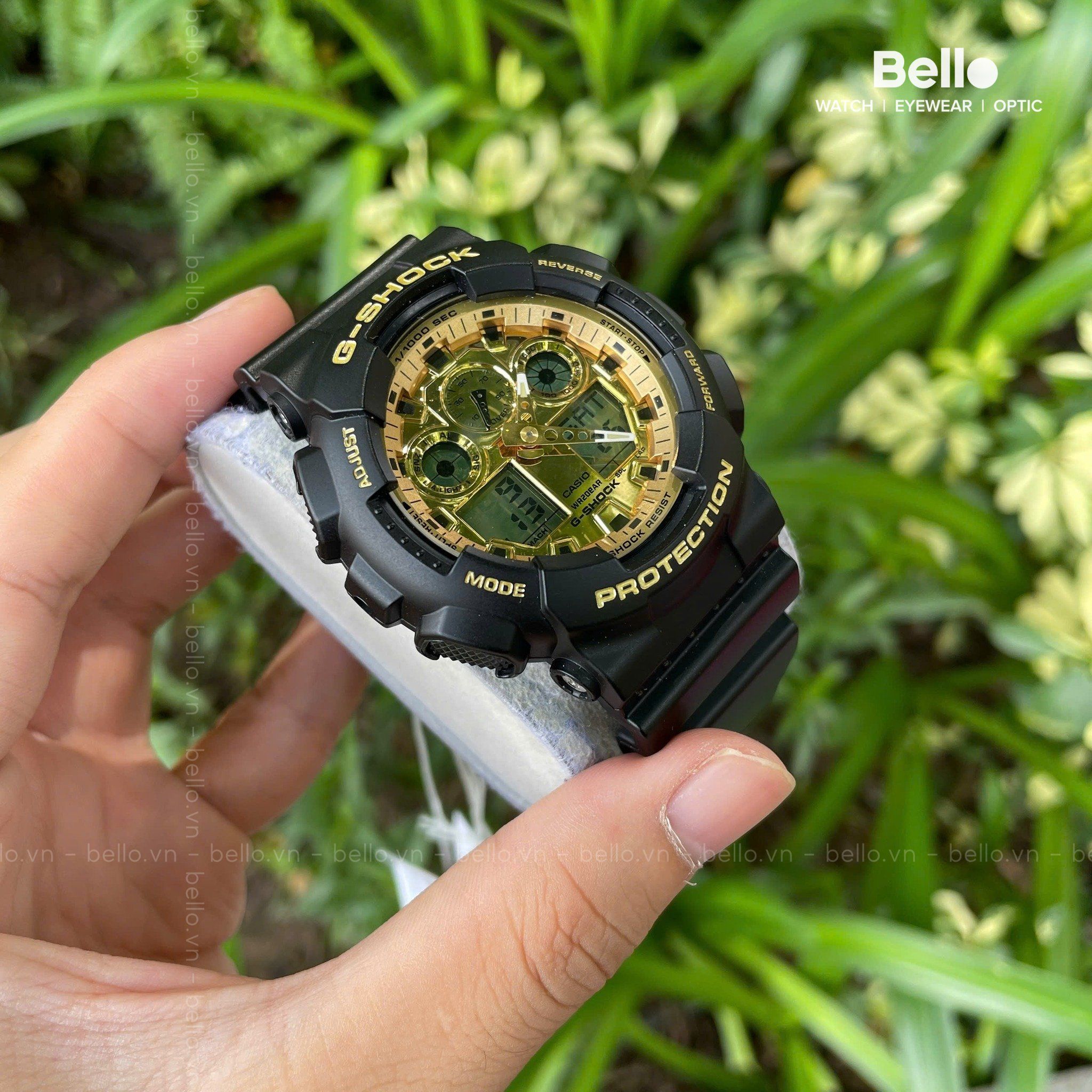 Đồng hồ Casio G-Shock GA-100GGB-1A9DR: Tem Vàng Chống Giả phía sau nắp lưng - Bảo hành 5 Năm toàn quốc cho thân máy - Tặng thẻ thay Pin miễn phí trọn đời - Bello Watch - Đồng hồ Casio Chính hãng Nhật Bản Tại Việt Nam Từ 2009