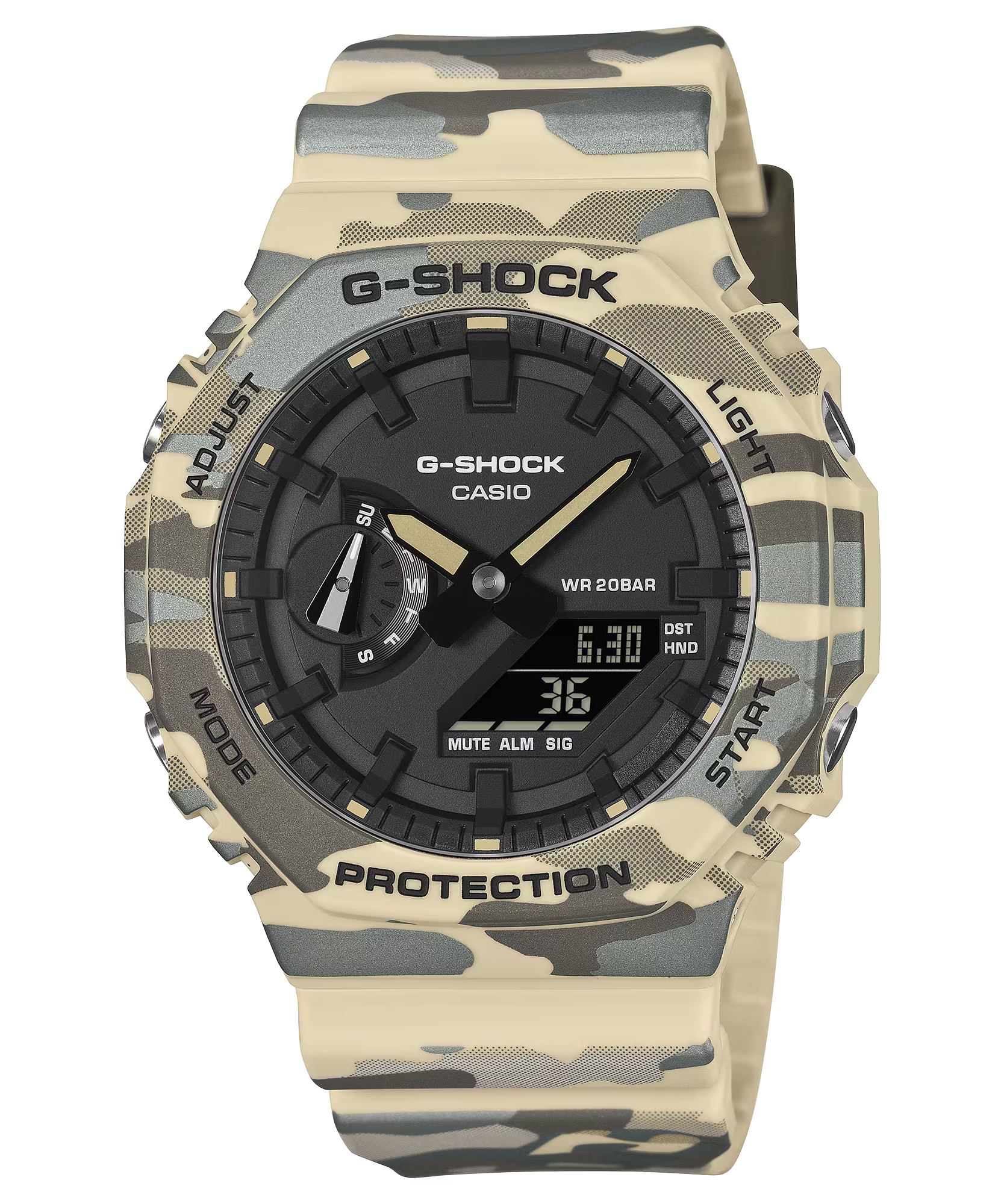 Thời trang tiên tiến, phong cách rằn ri cá tính — chiếc GA-2100 được ưa chuộng nay khoác lên mình họa tiết rằn ri G-SHOCK độc đáo, tạo điểm nhấn nổi bật cho mọi phong cách.