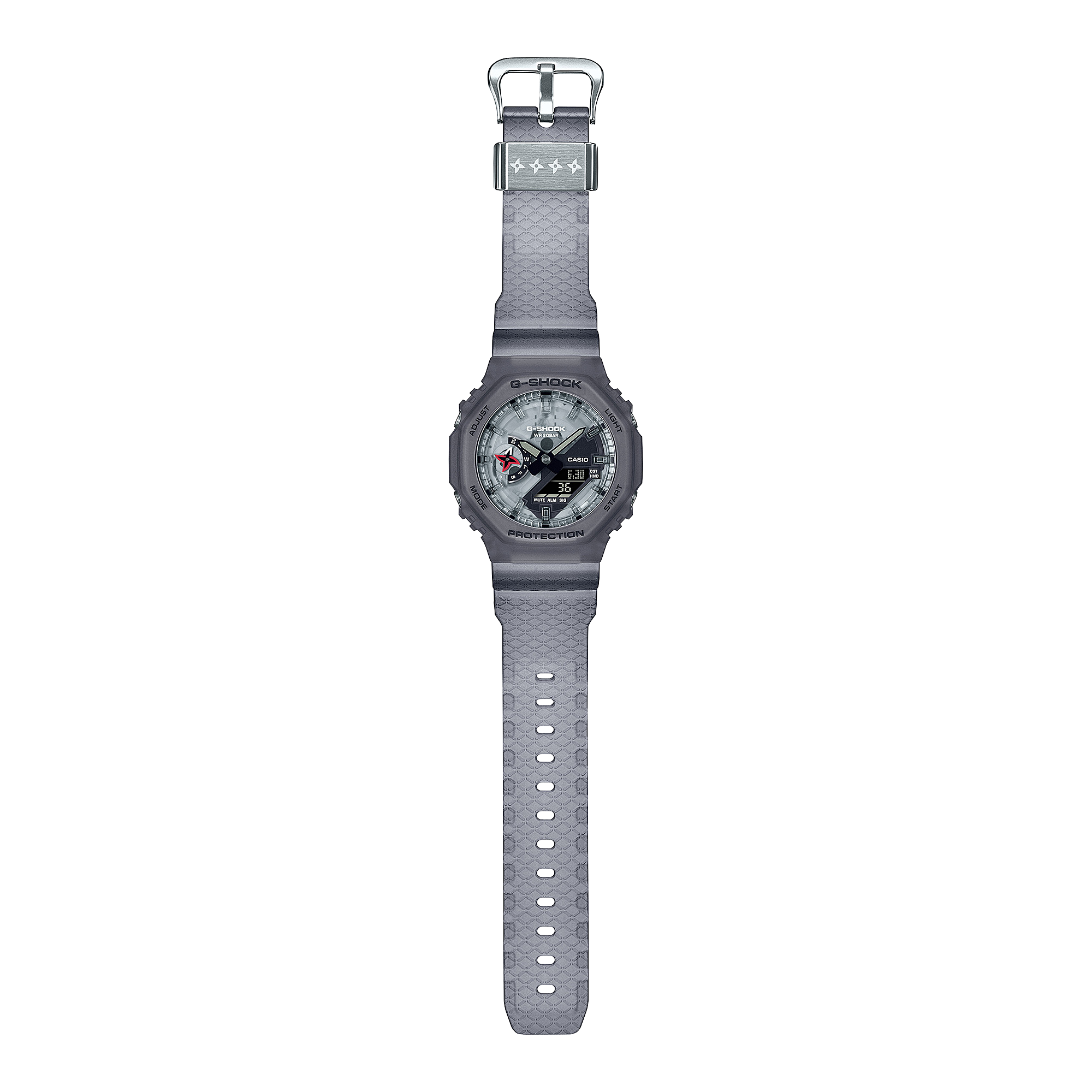 Cả ba đều có điểm nhấn là phi tiêu hình sao của ninja trên mặt số, đèn nền, vòng dây đeo và vỏ sau. Sau đó, mỗi chiếc đồng hồ sẽ đưa thiết kế lên một tầm cao mới với cảm hứng từ võ học nhẫn thuật khác (ninjutsu), một kỹ năng huyền thoại vốn là nghệ thuật của ninja. Hãy chọn mẫu thiết kế yêu thích của bạn — mẫu DW-5600NNJ về thủy thuật; mẫu GA-2100NNJ về hỏa thuật; và mẫu DW-6900NNJ về thuật ẩn thân với tốc độ như một cơn gió.