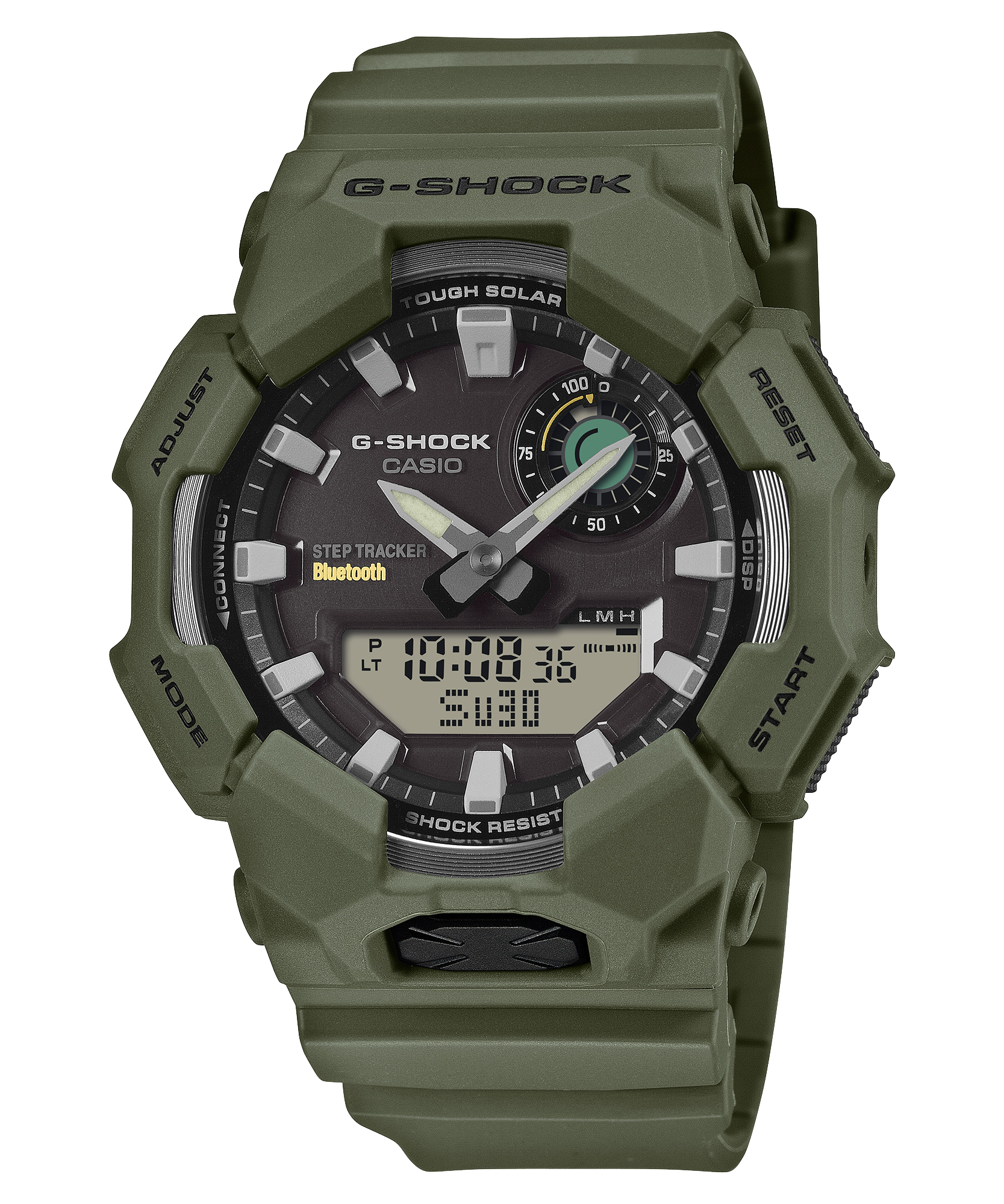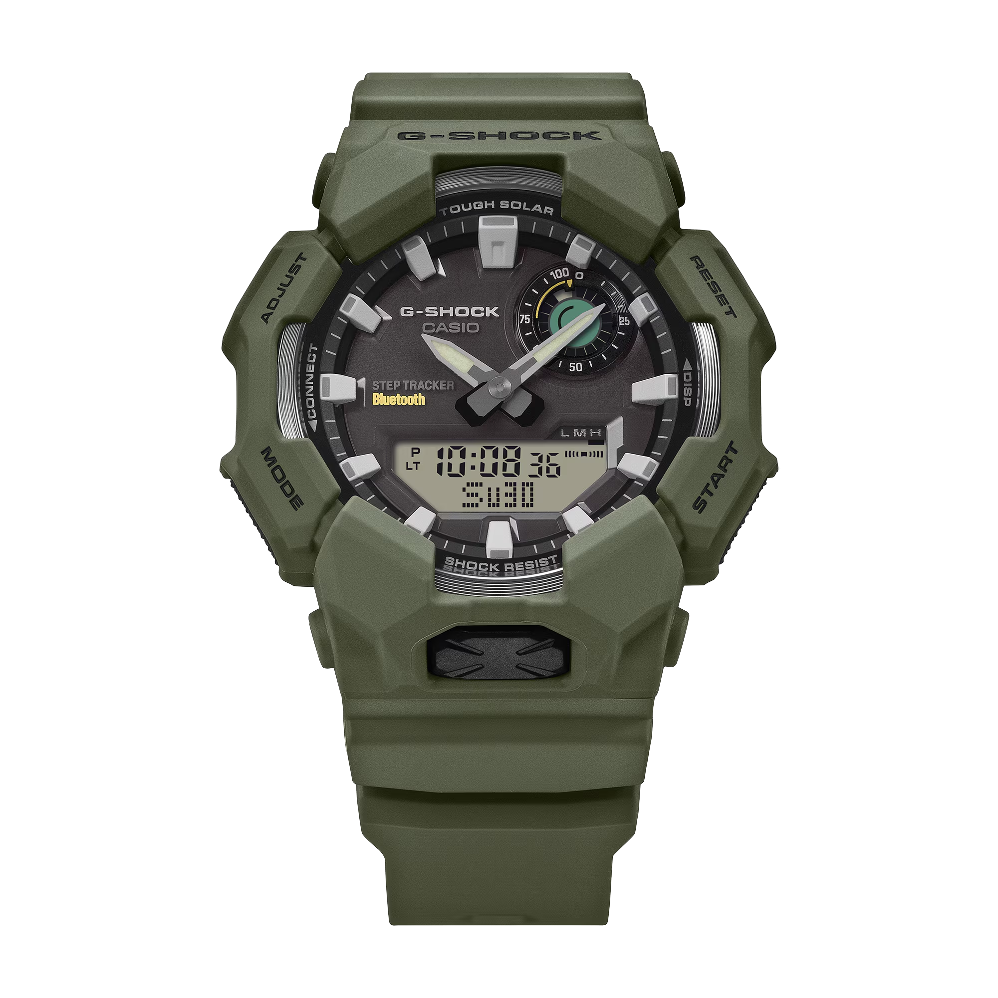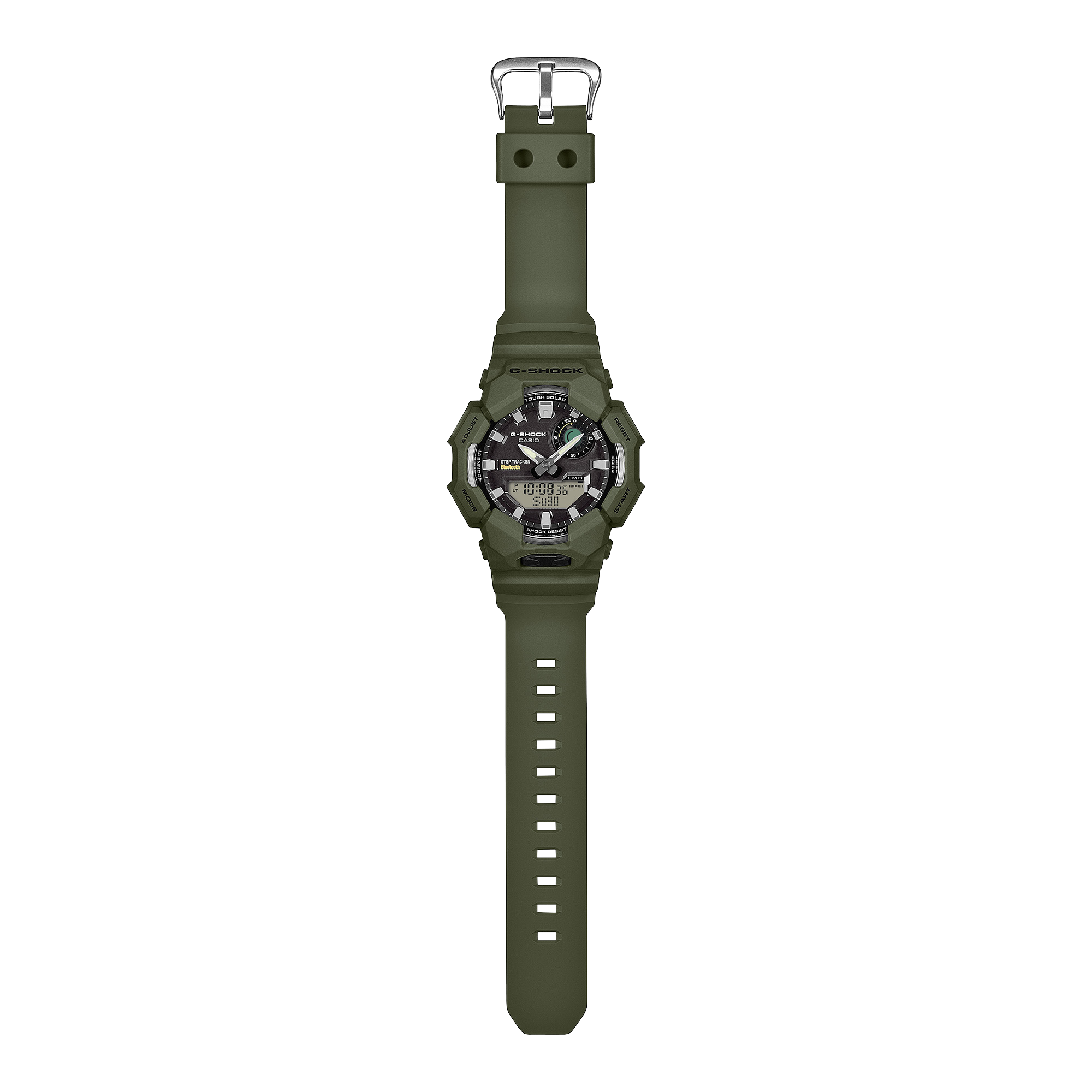 Chiếc đồng hồ này chỉ cần năng lượng mặt trời để đếm số bước và hiển thị dữ liệu theo dõi trên màn hình kỹ thuật số. Đồng hồ cũng gửi dữ liệu đến điện thoại thông minh được ghép nối qua Bluetooth®, mang đến đầy đủ chức năng trong tầm tay bạn. Chỉ cần chạm vào ứng dụng CASIO WATCHES để tự động hiển thị giờ chính xác và dễ dàng quản lý nhật ký cuộc sống từ điện thoại. Chiếc đồng hồ này có các tính năng tiện dụng như giờ thế giới và đồng hồ bấm giờ, cũng như đèn LED độ sáng cao có thể bật và tắt bằng nút lớn ở mặt trước của vỏ đồng hồ. Các vạch chỉ giờ và kim đồng hồ được hoàn thiện bằng chất liệu phát quang đảm bảo khả năng hiển thị ngay cả trong bóng tối.