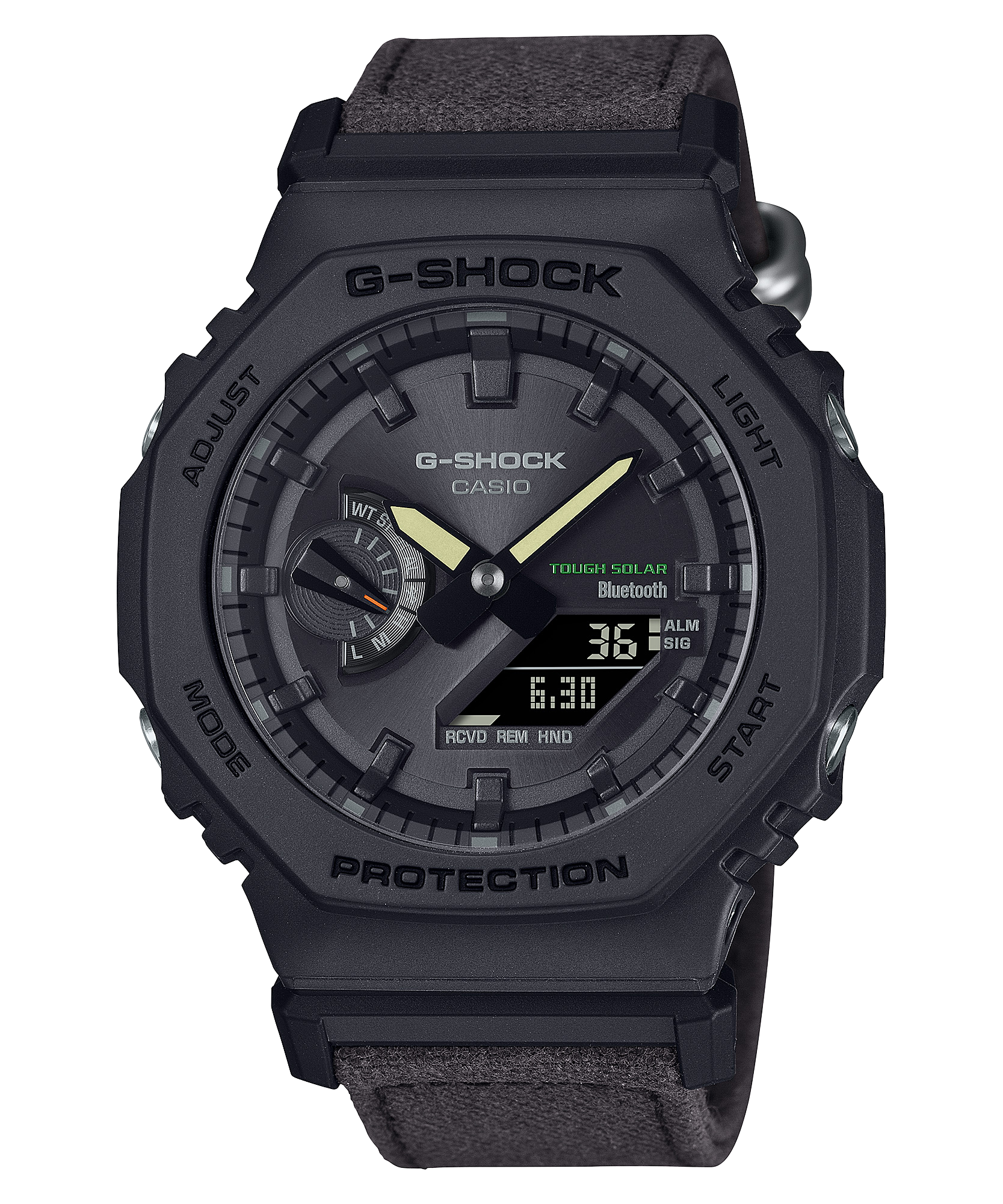 Dây đeo có màu nhuộm từ FOOD TEXTILE, một dự án tái sử dụng thực phẩm lẽ ra sẽ bị hủy bỏ để tạo ra thuốc nhuộm tự nhiên. Màu đất mềm mại trở nên sống động nhờ thuốc nhuộm được làm từ hơn 90% thành phần tự nhiên. Màu nâu đậm của dây đeo GA-B2100CT-1A5 có được nhờ thuốc nhuộm chiết xuất từ cà phê, trong khi màu xám kaki của dây đeo GA-B2100CT-5A là từ thuốc nhuộm chiết xuất từ hoa cúc dại.