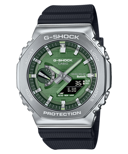 Sự táo bạo trong lớp vỏ kim loại kết hợp với ánh sáng tinh tế trong mẫu GBM-2100 mang lại khả năng Kết nối điện thoại thông minh qua Bluetooth® và hệ thống sạc Tough Solar, tất cả đều có thiết kế kim loại hoàn thiện tỉ mỉ với gờ hình bát giác mang tính biểu tượng.
