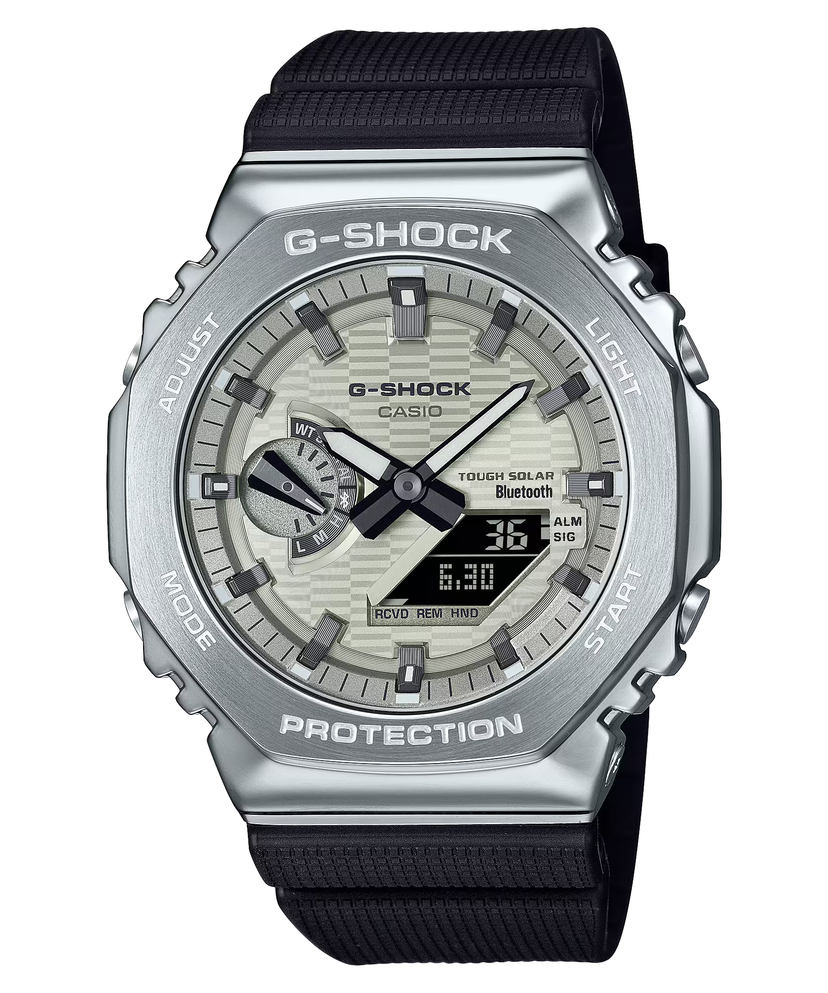Hãy chọn sự kết hợp màu sắc yêu thích của bạn với lớp hoàn thiện lắng đọng hơi nước — GBM-2100A-2B với mặt số xanh dương và vạch chỉ giờ màu bạc, GBM-2100A-4B với mặt số đỏ tía và vạch chỉ giờ màu bạc, hoặc GBM-2100A-8B với mặt số vàng nhạt và vạch chỉ giờ màu đen.