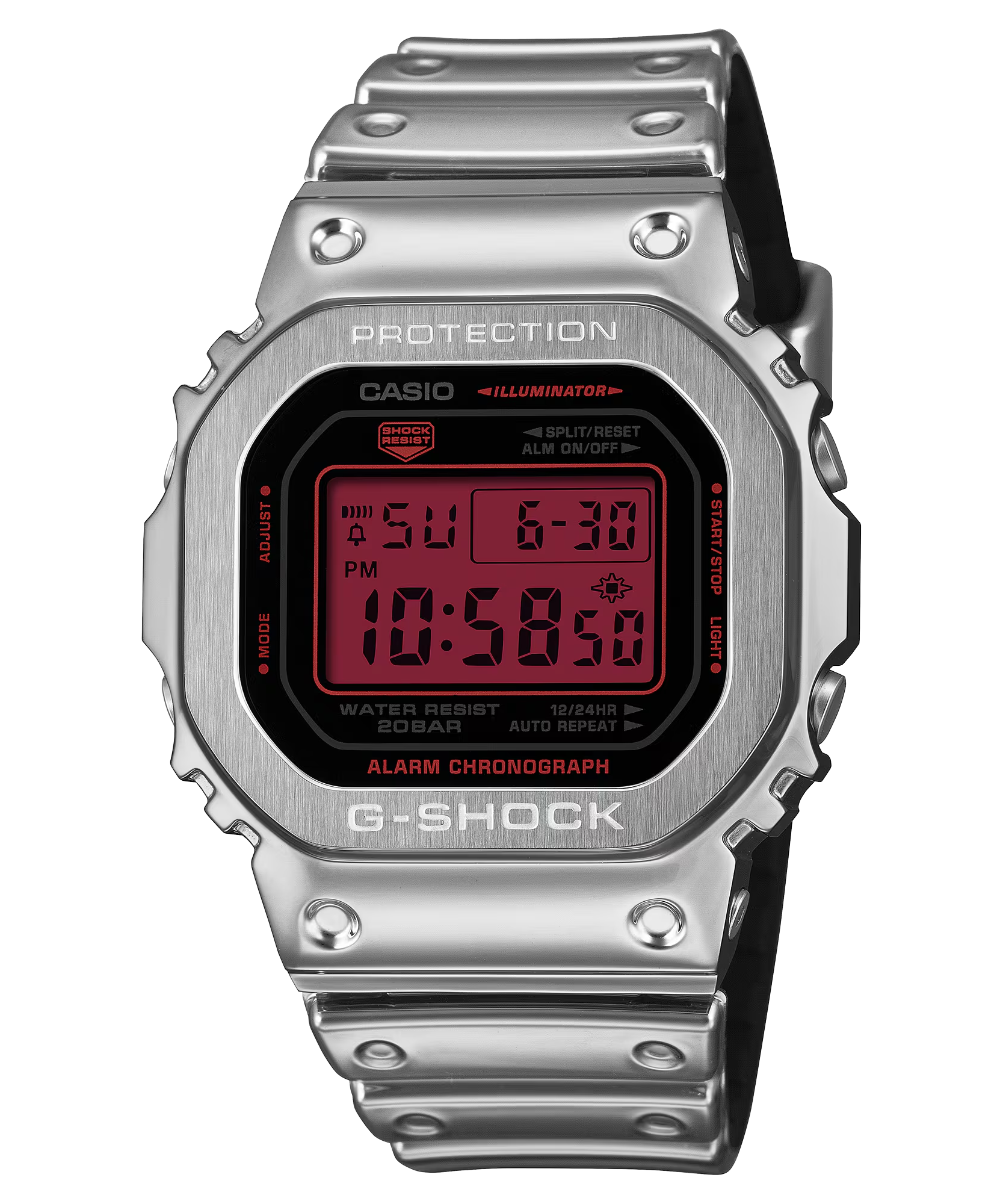 Bốn mẫu đồng hồ kinh điển mang màu bạc chủ đạo với điểm nhấn màu đỏ và đen: GM-5600 kỹ thuật số, một di sản trực tiếp từ chiếc G-SHOCK đầu tiên; GM-6900, một biểu tượng văn hóa vượt thời gian vẫn được mọi lứa tuổi yêu thích; GM-110 với vỏ ngoài ngoại cỡ bắt mắt; và GM-2100, một vẻ đẹp tinh tế với gờ bát giác.