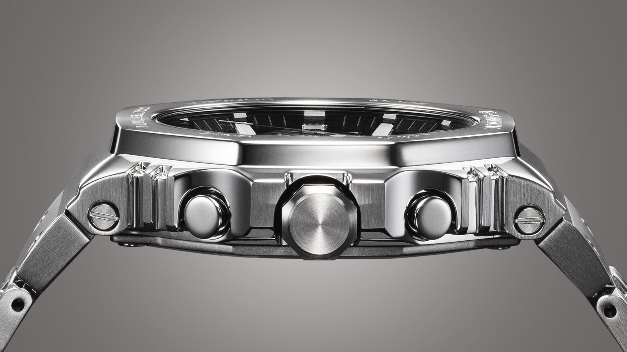 Các chi tiết đệm làm bằng nhựa tinh xảo được lắp giữa gờ và vỏ đồng hồ tạo nên cấu trúc chống va đập với lớp vỏ ngoài hoàn toàn bằng kim loại. Gờ được tạo hình ba chiều thông qua quy trình rèn, cắt và đánh bóng tốn nhiều thời gian, sau đó được hoàn thiện đẹp mắt bằng phương pháp xử lý đường mảnh tròn ở phần bề mặt trên cùng và đánh bóng gương ở bên sườn.