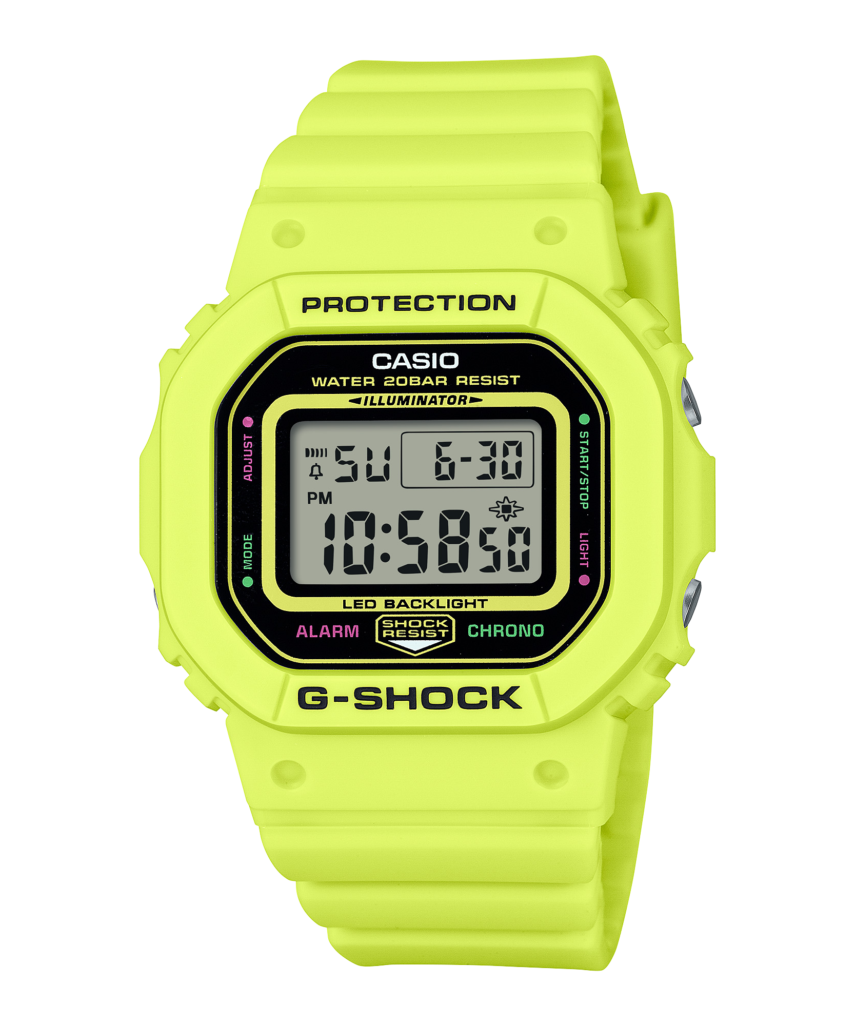 Vỏ 5600 cổ điển có màu xanh dương, đỏ và vàng sống động cho một chiếc đồng hồ thể hiện sự năng động lao vút mà các vận động viên biết rất rõ. Cường độ này được phản ánh trên màn hình LCD. Nhấn nút đèn LED và một tia sét đậm nhấp nháy trên màn hình.