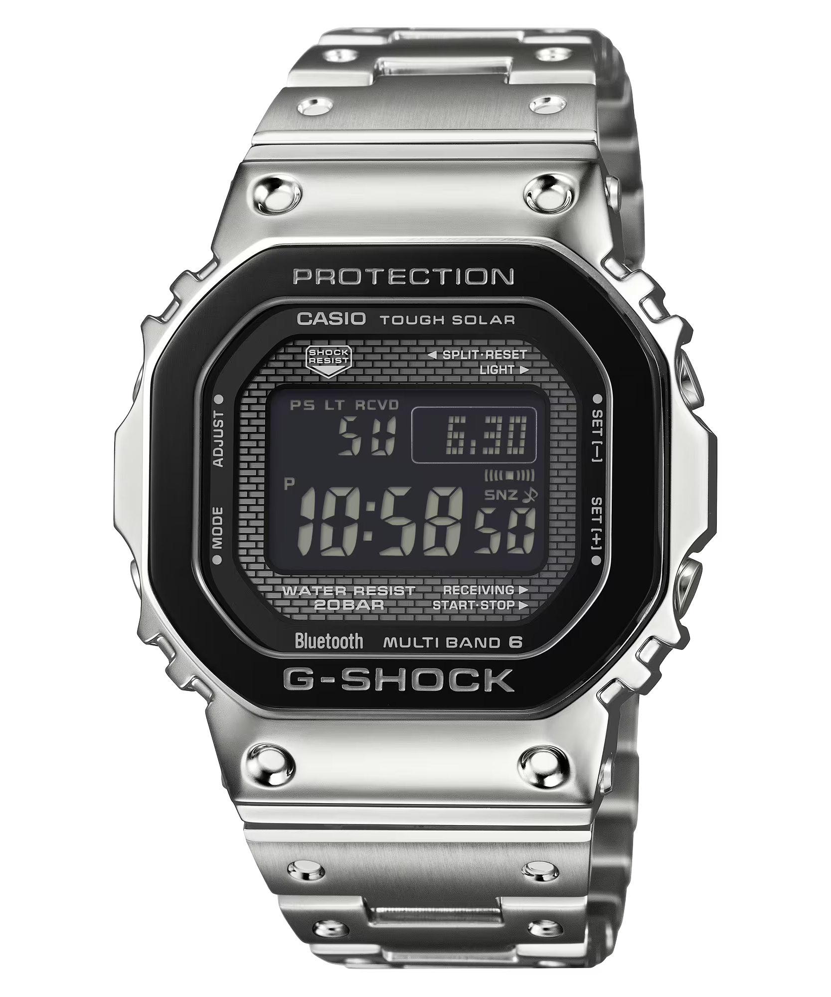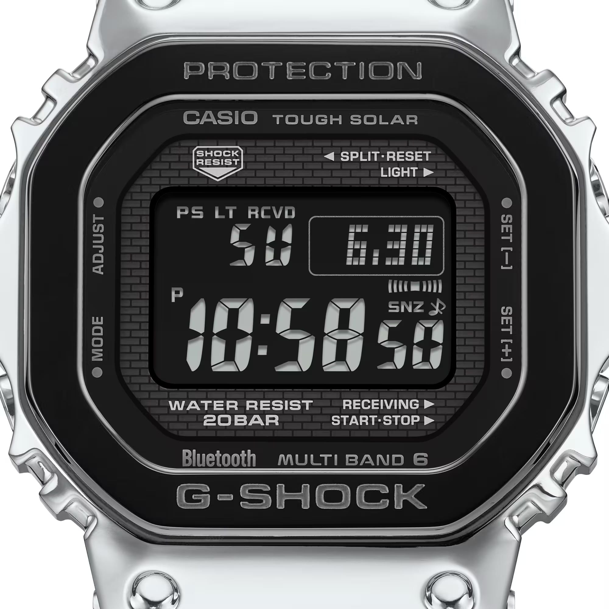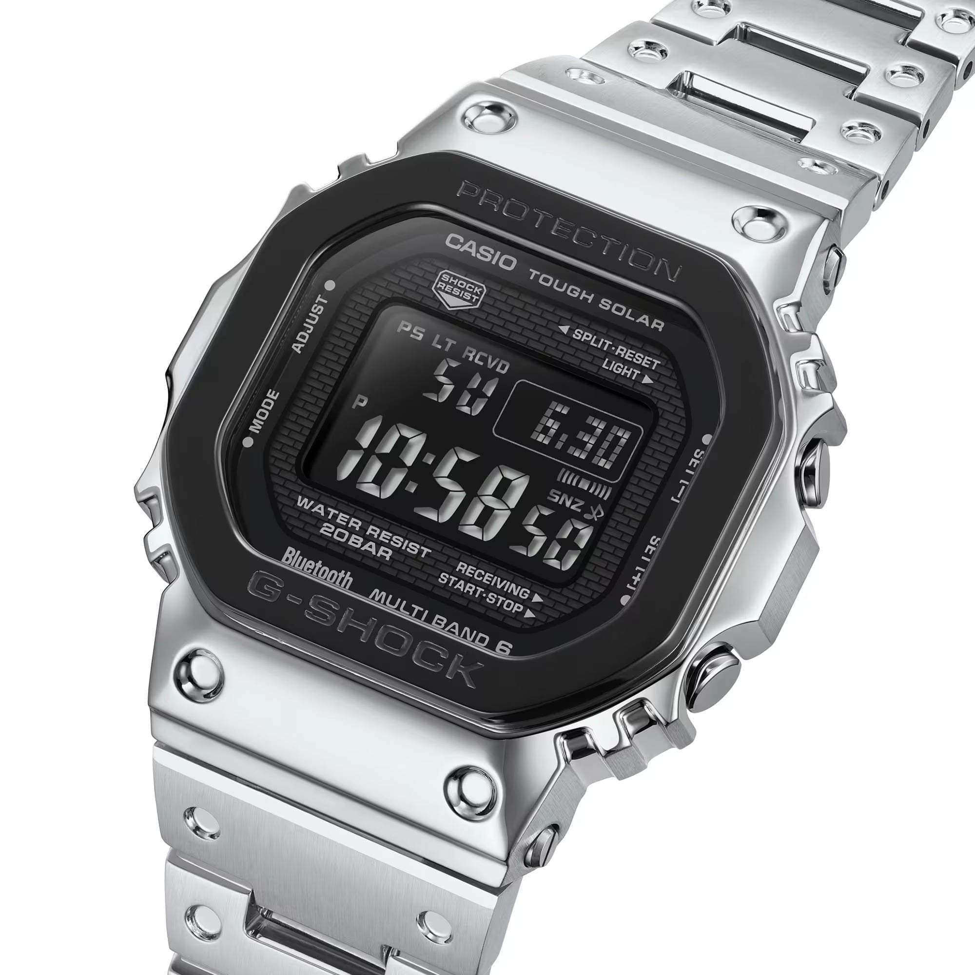 Gờ mặt trên của GM-B2100BT được hoàn thiện bằng đường nét mảnh, toát lên vẻ sang trọng cao cấp của kết cấu kim loại tinh xảo. Các vạch chỉ giờ được hoàn thiện bằng kỹ thuật lắng đọng hơi màu bạc giúp tăng cường khả năng hiển thị và tạo nên sự tương phản tuyệt đẹp với mặt số.