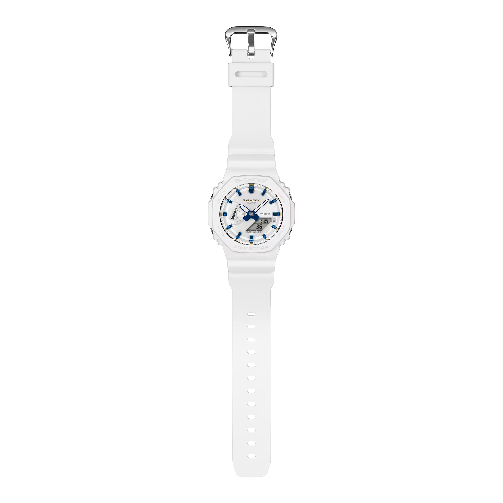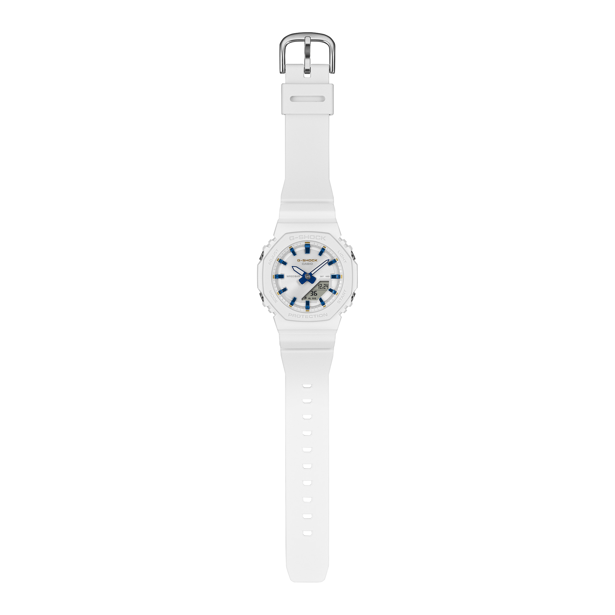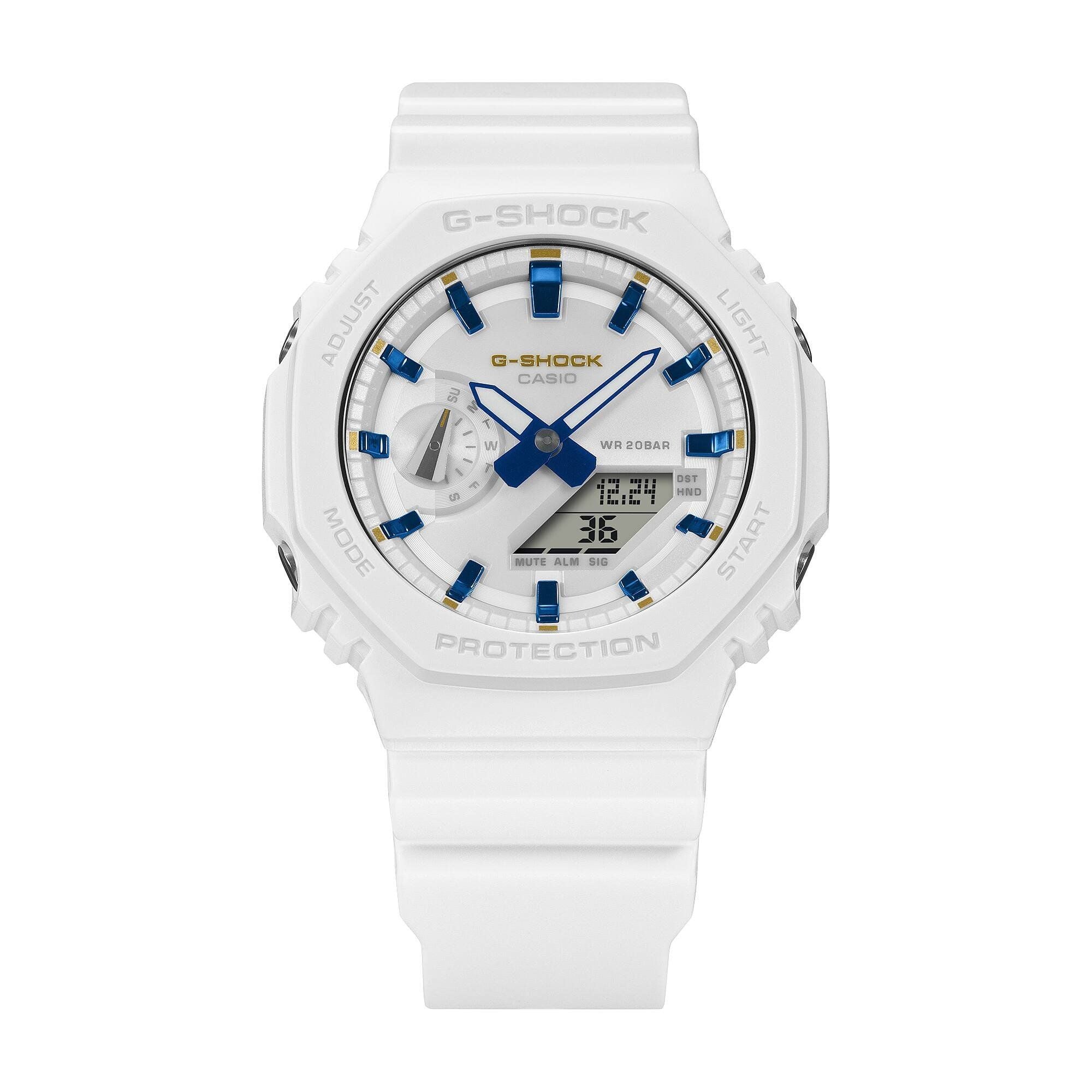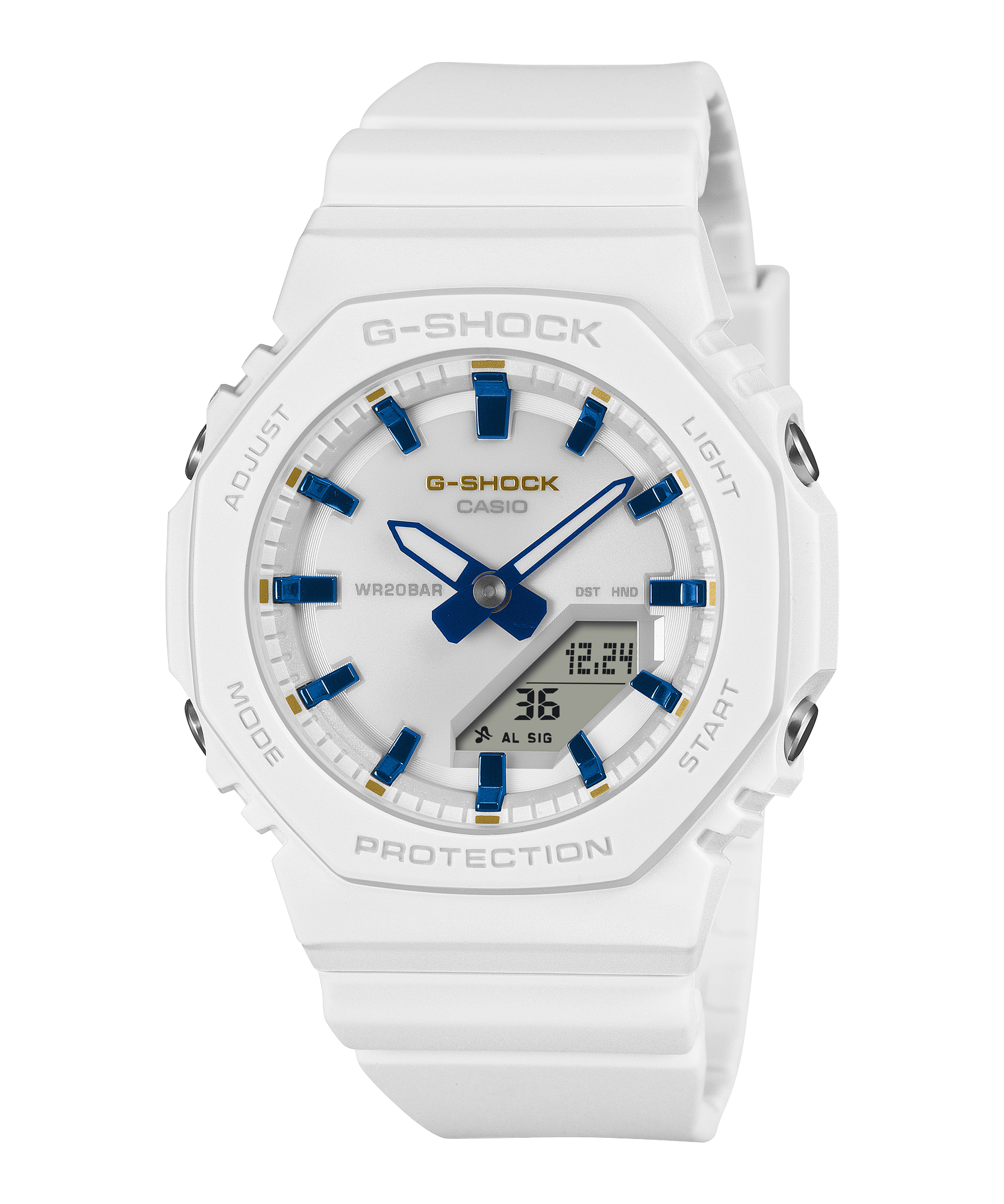 Hai mẫu đồng hồ GA-2100 và GMA-P2100 thời thượng, luôn được ưa chuộng với sắc trắng và xanh dương rực rỡ, lấy cảm hứng từ sự vui tươi của những vật trang trí lấp lánh. Với tông màu tươi mới và rực rỡ, những chiếc đồng hồ đôi này sẵn sàng chào đón mùa lễ hội hoặc tô điểm thêm cho phong cách của bạn bất kỳ thời điểm nào trong năm.